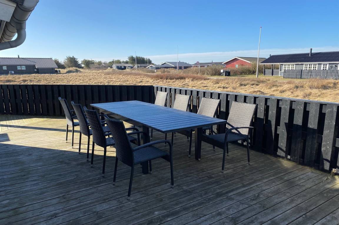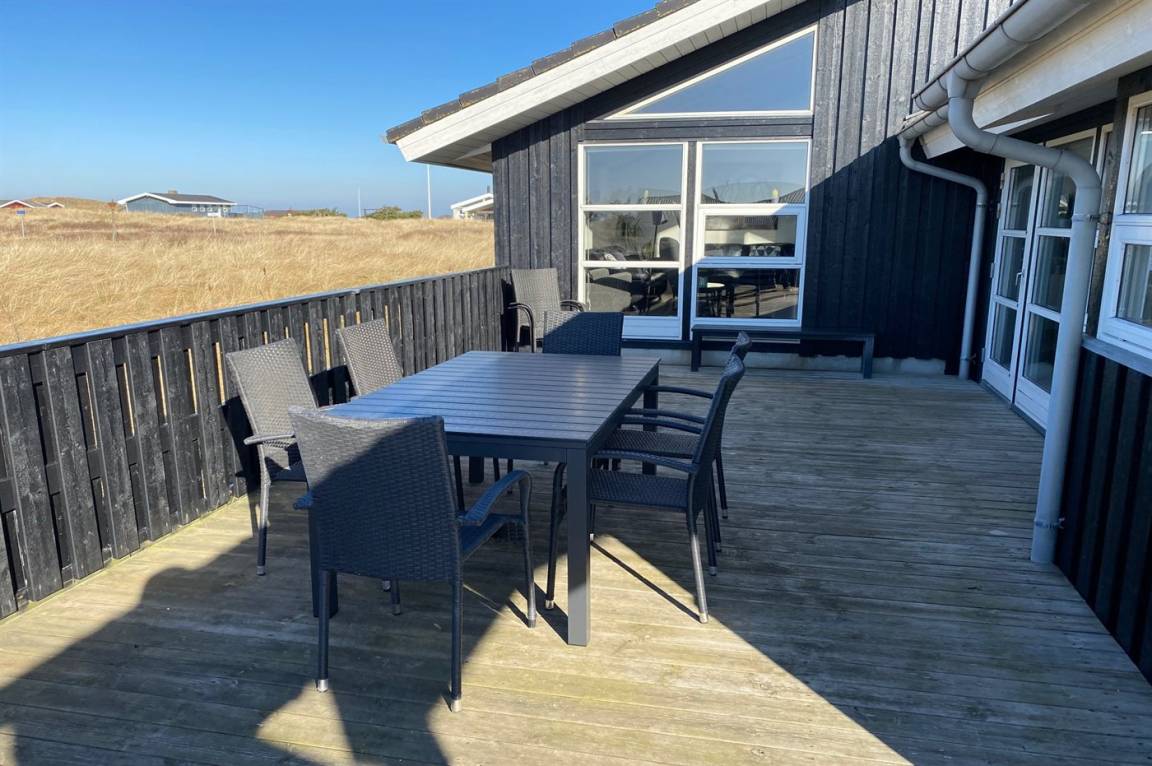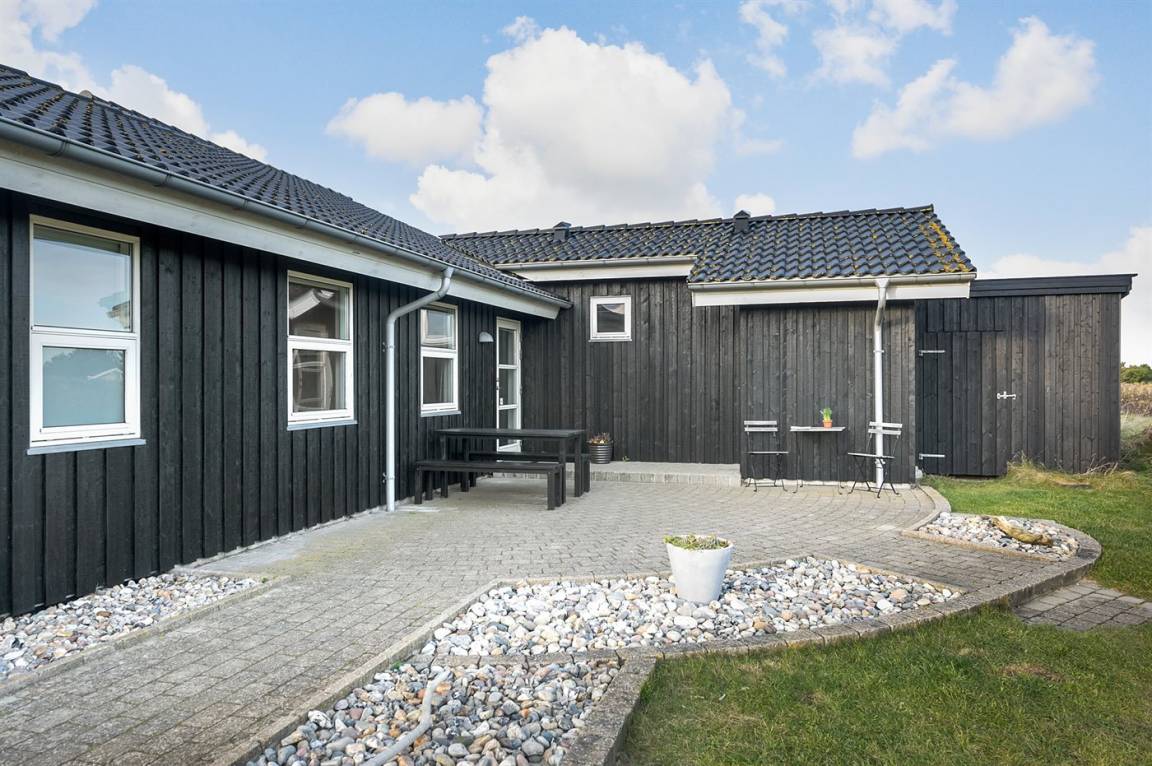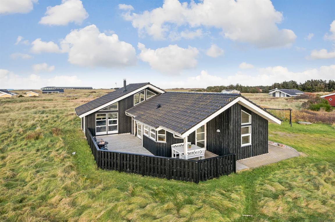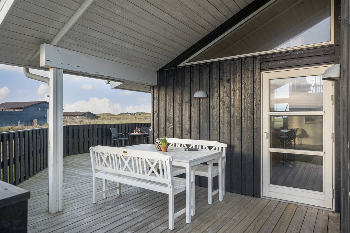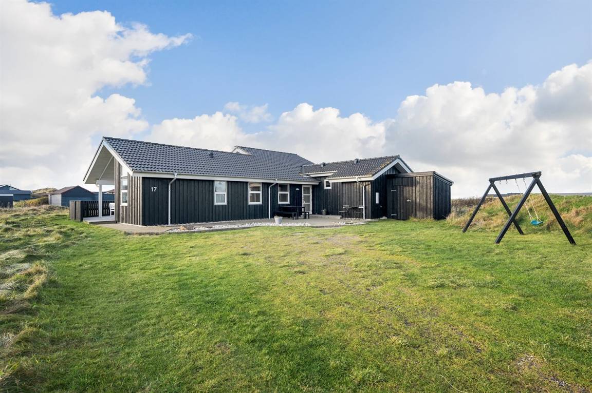 DraußenDie Ferienunterkunft liegt auf einem 2100 m² großen Dünengrundstück. Die Entfernung zum Meer beträgt 452 m. Die nächste Einkaufsmöglichkeit liegt 450 m entfernt. Es steht ein 40 m² Terrassenareal zur Verfügung. Außerdem gibt es 10 m² überdachte Terrasse. Geräteraum. Schaukel. Sandkasten. Parkplatz auf dem Grundstück.