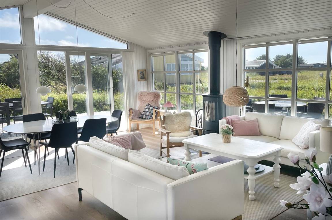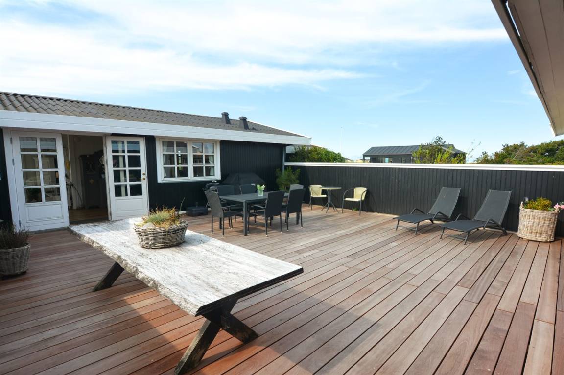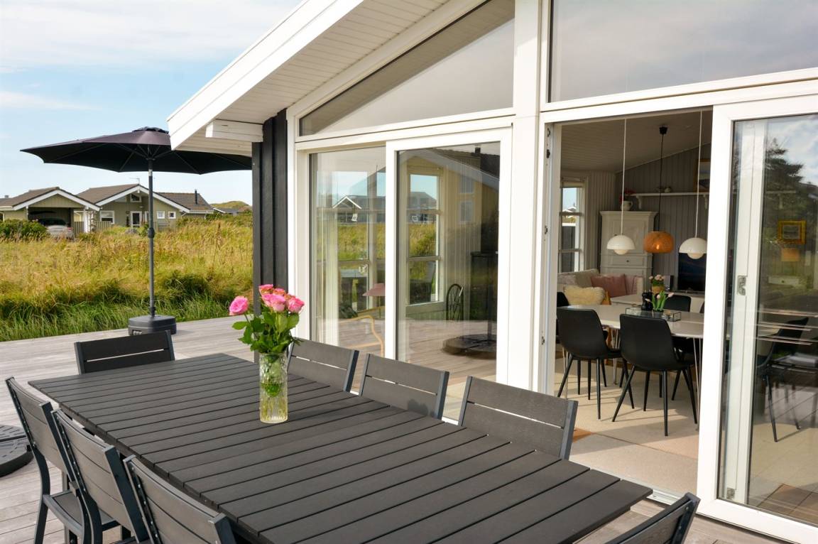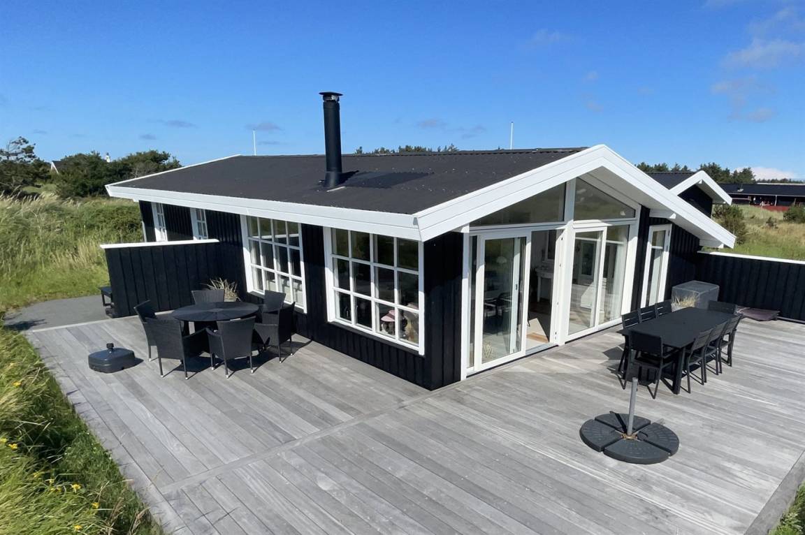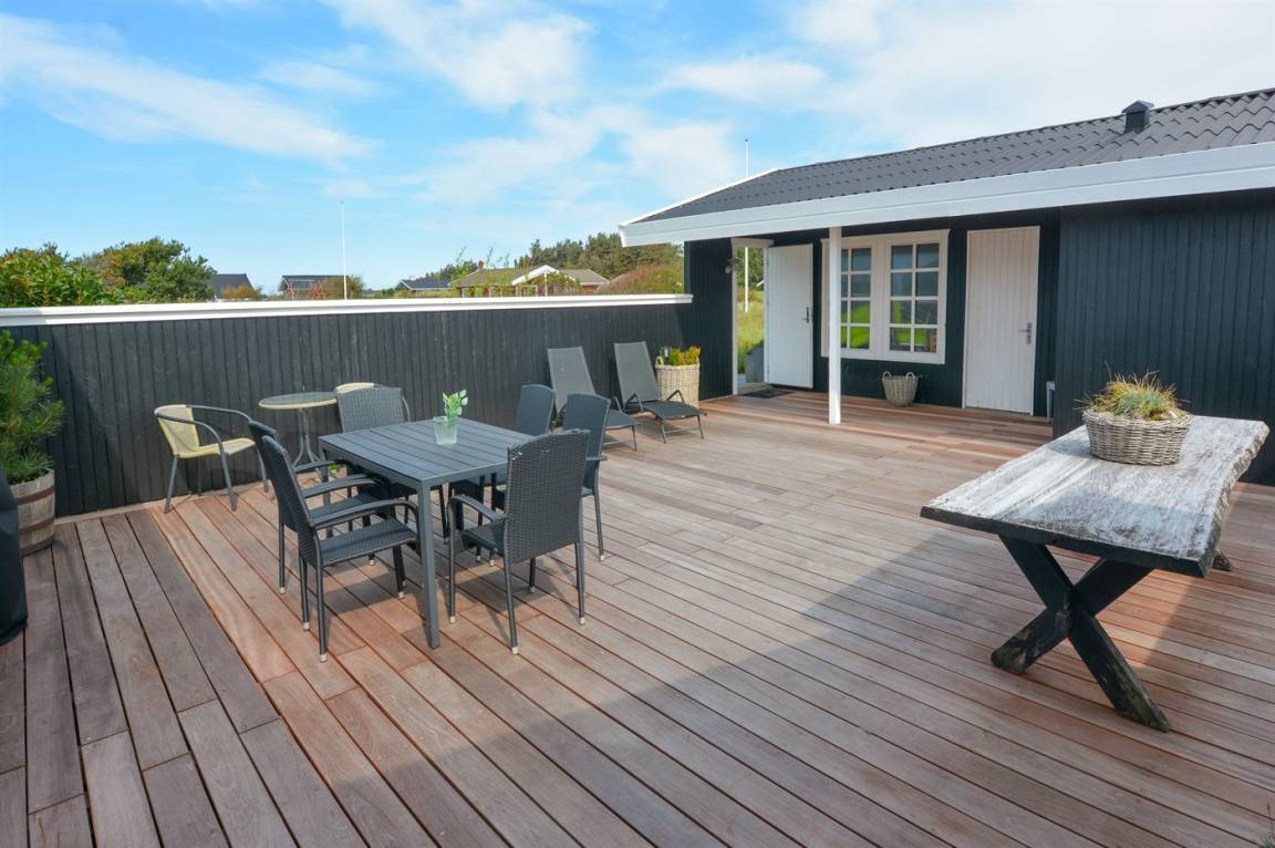 Ein schönes und gepflegtes Ferienhaus auf einem großen Grundstück dicht an der Nordsee und dem schönen Badestrand. Zum Haus gehört ein Gästehaus, das mit eigenem Badezimmer und Doppelbett eingerichtet ist.