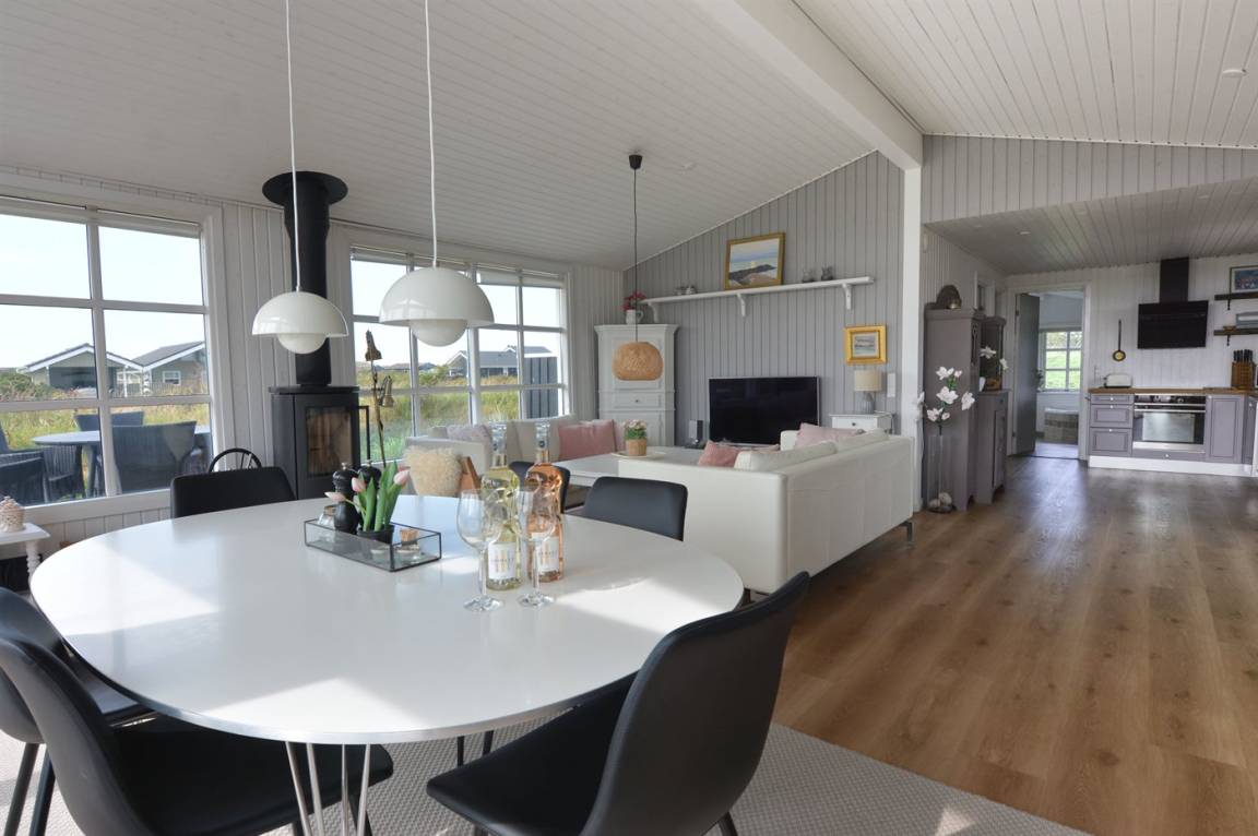 EinrichtungDas Ferienhaus eignet sich für 7 Personen sowie 1 Kleinkind bis zu 3 Jahren. Die Ferienunterkunft hat eine Wohnfläche von 122 m² und wurde 1978 gebaut. 2020 wurde die Ferienunterkunft teilweise renoviert. Es ist erlaubt 1 Haustier mitzubringen. Die Ferienunterkunft ist mit energiesparender Wärmepumpe ausgestattet. Die Ferienunterkunft ist mit Waschmaschine ausgestattet. Wäschetrockner. Tiefkühlmöglichkeit mit 100 Liter Nutzinhalt. Es gibt außerdem einen Kaminofen. Für die jüngsten Feriengäste ist 1 Kinderhochstuhl vorhanden.