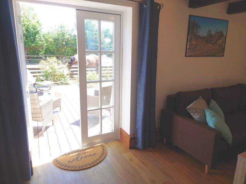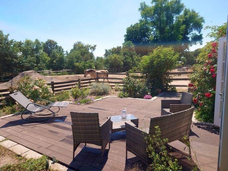 die zum draußen essen und relaxen bei wunderbarem "Pferde-Kino" einlädt.