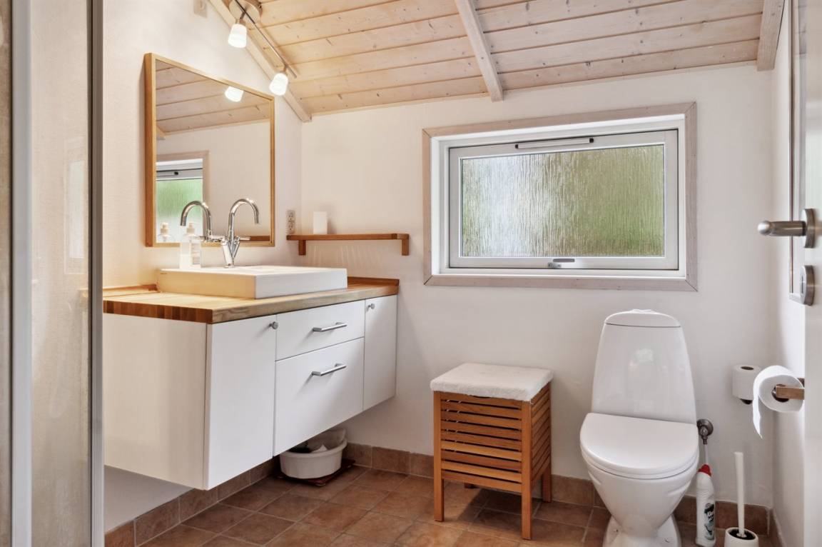 „The vacation at the holiday home: Badeværelset var ikke gjort ordentligt rent. Der var hår i skuffen under vasken og tandbørstekrusene var ulækre. Man kunne ønske sig knager til håndklæder på det lille toilet og knager til viskestykker/håndklæder i køkkenet. Ligesom en skraldespand på minimum det ene toilet, ville have været rart. Der manglede specifikke vejledninger i husets inventar fx tv, kaffemaskine, internet. Mappen der ligger i huset er helt generel og derfor ikke brugbar. Vi måtte finde vejledning til kaffemaskinen på nettet, alligevel kunne vi ikke få den til at fungere. Der manglede service som ordentlige glas og krus. Der mangler lys i stuen om aftenen, og der var el-spare-pærere i alle lamper, som er lang tid om at varme op til fuld styrke.“