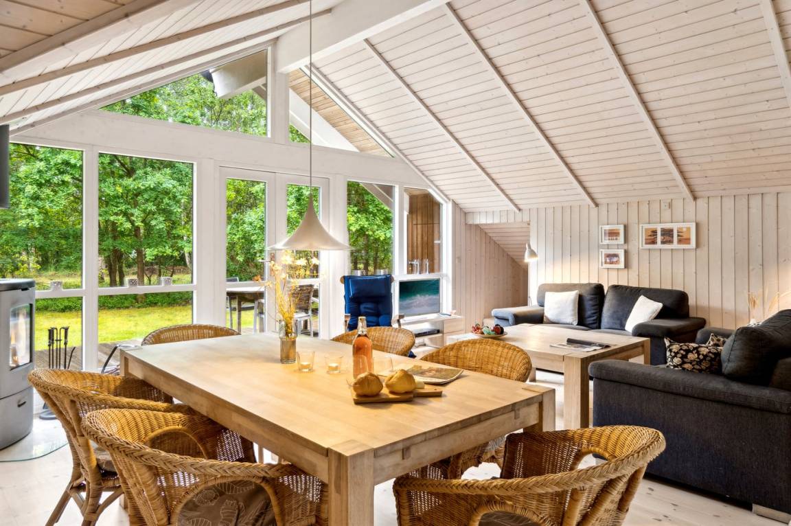 Schönes Ferienhaus aus Holz, 2007 gebaut, auf einem Naturgrundstück in einem ruhigen Ferienhausgebiet gelegen, 700 m von einem phantastischen Sandbadestrand und Sanddünen entfernt. Zum Haus gehören mehrere offene Terrassen und eine teilweise überdachte Terrasse mit Gartenmöbeln. Innen gibt es Holzböden, -decken und -wände. Schönes Badezimmer mit Duschnische und Fußbodenheizung. Gästetoilette vorhanden. Die funktionelle, offene Küche ist u. a. mit Tiefkühlgerät, Herd mit Ceran-Feld, Umluftofen, Mikrowelle und Geschirrspüler ausgestattet. Schönes, helles, nett möbliertes und geräumiges Wohnzimmer mit hübschen Fenstern. Das Wohnzimmer ist u. a. mit Kaminofen, TV (keine Fernsehsender - nur Streaming), DVD-Spieler, Radio und CD-Spieler eingerichtet. Es steht außerdem kabellose Internetverbindung zur Verfügung. Vom Wohnzimmer gibt es direkten Ausgang zu der Terrasse. Die Schlafplätze des Hauses verteilen sich auf 1 Schlafzimmer mit Doppelbett, 1 Zimmer mit Etagenbett für Kinder und 1 Zimmer mit Doppelschlafcouch. Waschmaschine in der Waschküche. Ein sehr schönes Ferienhaus, das in Gehabstand zum Gudmindrup Strand liegt - ein schöner Sandbadestrand mit niedrigen Dünen. Der Strand ist kinderfreundlich, da das Wasser nur langsam tief wird. Der Strand hat eine Blaue Flagge, Behindertenrampe direkt zum Wasser sowie Rettungsschwimmer in den Schulferien. Sie können auch den hübschen Sonnenuntergang über das Wasser erleben. Dicht am Ferienhaus liegt Nykøbing Sjælland mit vielen Läden, Einkaufsstraßen, Restaurants sowie Aktivitätsmöglichkeiten für die ganze Familie. Das Gebiet bietet mehrere Golfplätze, u. a. Højby Golfbane, Odsherred Golfklub und Mensalgård Pay&Play-Golfplatz mit 9 Löchern. Für Sportangler gibt es auch viele Angelmöglichkeiten der Küste entlang. Besuchen Sie auch Sommerland Sjælland, der auch mehr als 60 Aktivitäten für die ganze Familie bietet. Übrigens: Nur Vermietung an Ferienaufenthalte.
