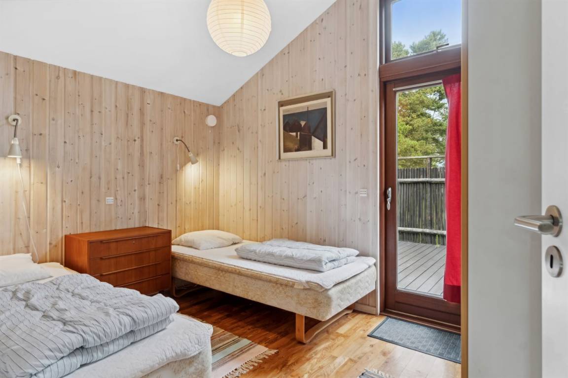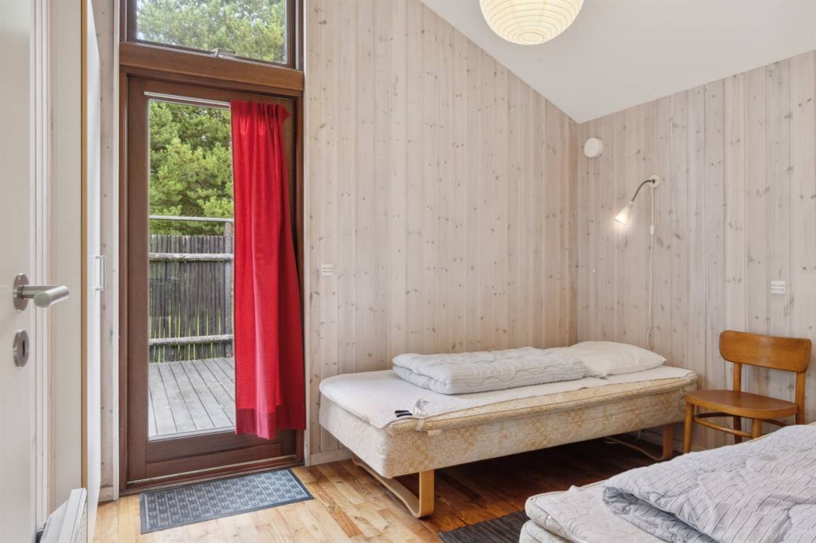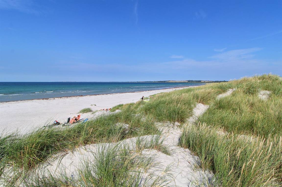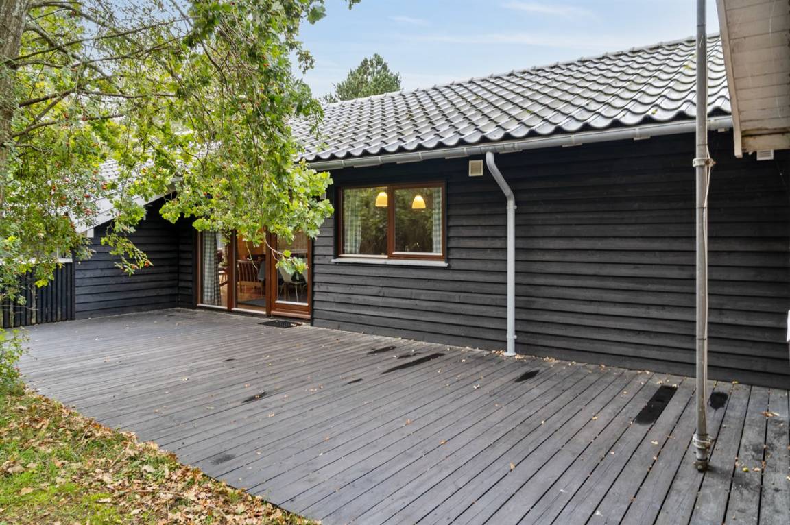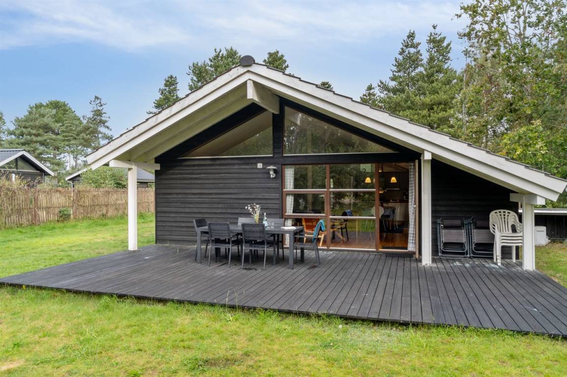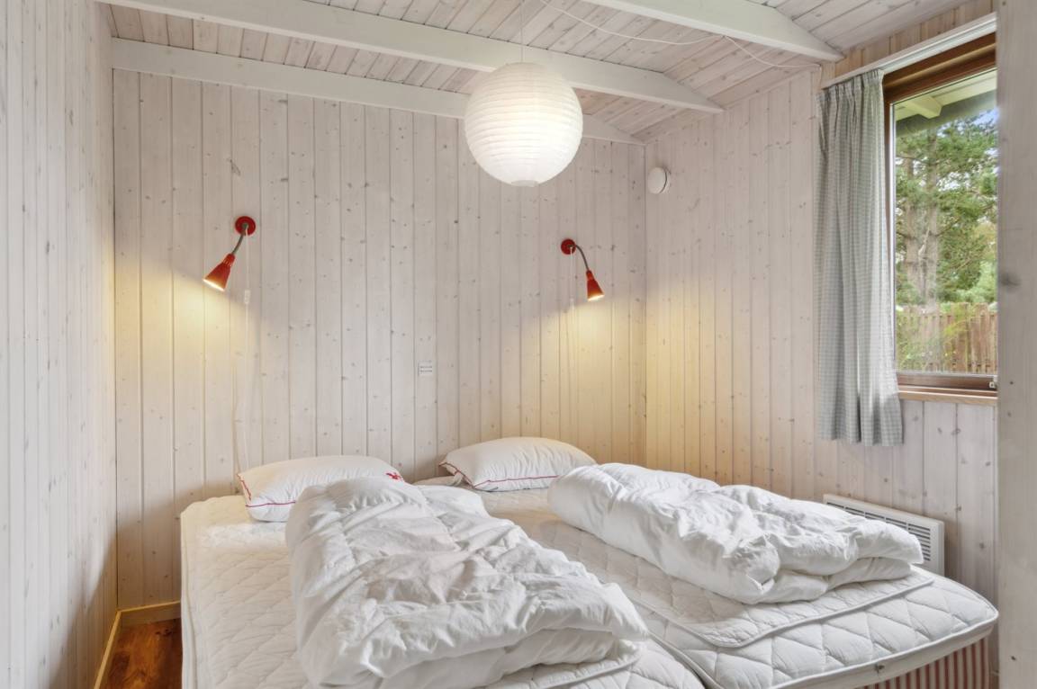 Auf einem großen Wald-/Plantagengrundstück liegt dieses schöne Luxusferienhaus aus Holz, 2008 gebaut, mit nur 400 m zu fantastischem Sandbadestrand mit Sanddünen. Zum Haus gehören mehrere offene Terrassen und ein teilweise überdachte Terrassenareal mit Gartenmöbeln. Innen gibt es Buchenparkettböden, schrägende Holzdecken, teils Holzwände teils verputzte Schieferwände. Nettes Badezimmer mit Duschnische, Fußbodenheizung, 2-Pers.-Whirlpool und direktem Zugang zur Sauna des Hauses. Die offene Küche ist u. a. mit Tiefkühlgerät, Mikrowelle, Geschirrspüler, Herd mit Ceran-Feld und Umluftofen ausgerüstet. Schönes, großes, helles und nett möbliertes Wohnzimmer mit geräumiger Atmosphäre und netten Fenstern sowie schrägenden Decken. Das Wohnzimmer ist mit Wärmepumpe/Aircondition, TV, DVD- und CD-Spieler sowie Radio eingerichtet. Vom Wohnzimmer und allen Zimmern gibt es direkten Ausgang zu den Terrassen. Die Schlafplätze des Hauses verteilen sich auf 2 Zimmer mit Doppelbett sowie 1 Zimmer mit 2 Einzelbetten. Waschmaschine zur Verfügung. Ein sehr hübsches Ferienhaus in einem Gebiet mit vielen Aktivitätsmöglichkeiten, u. a. Golf, Sportangeln und Shopping. Das Haus wird nur an Feriengäste vermietet.
