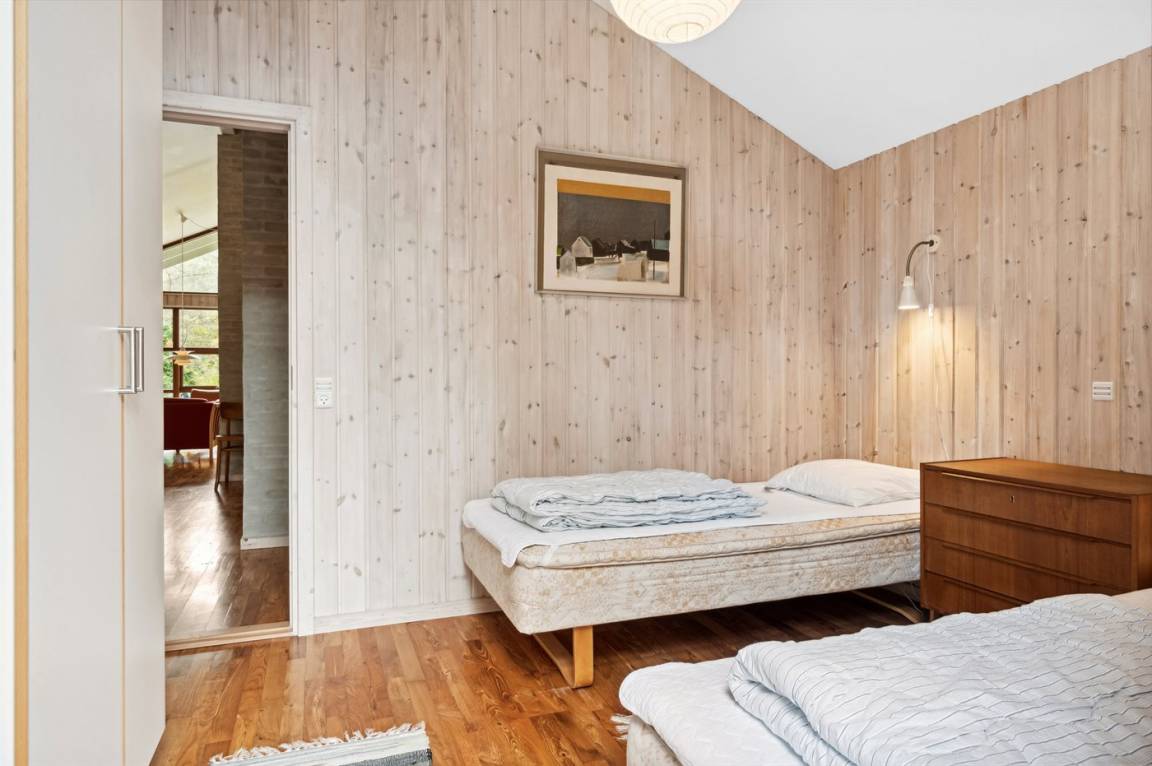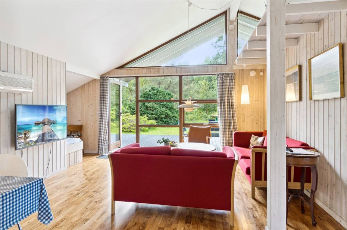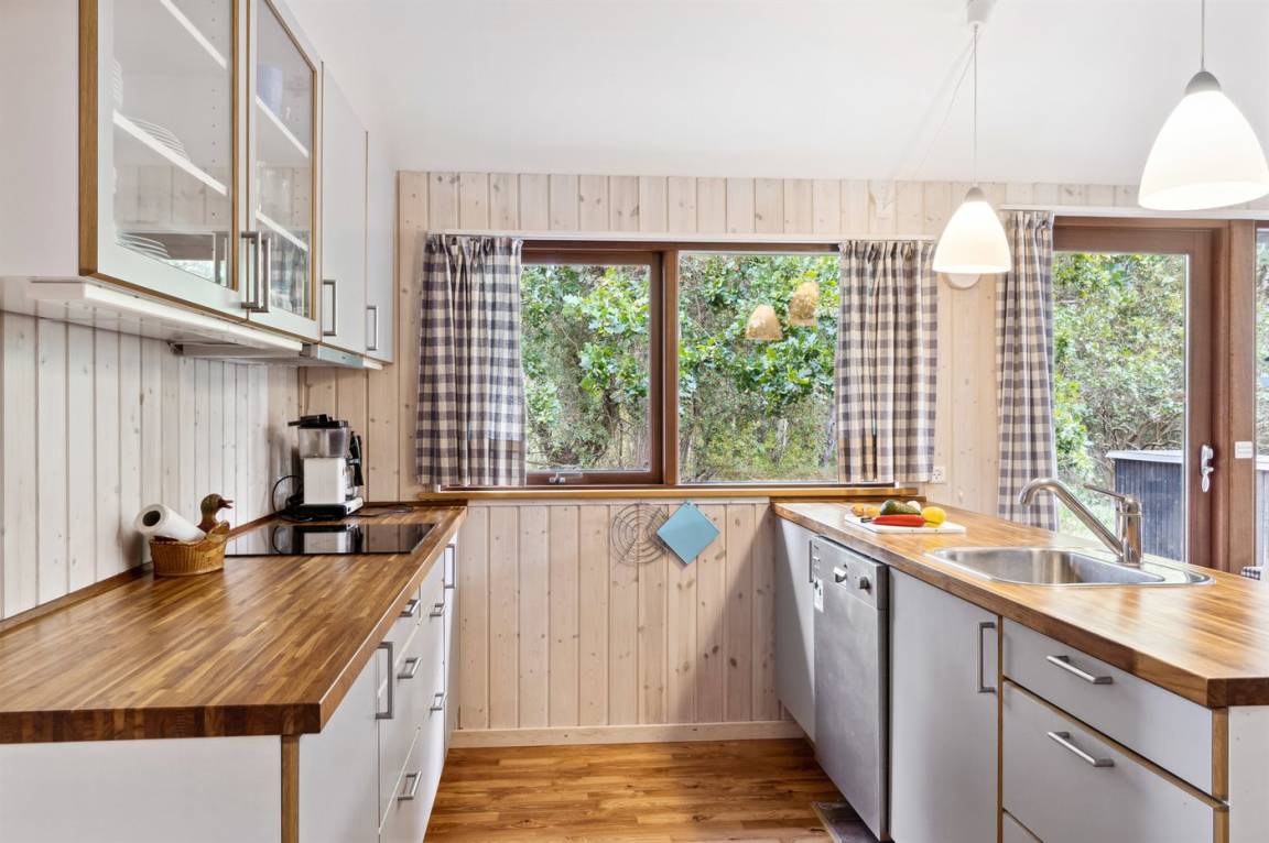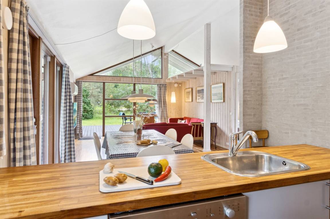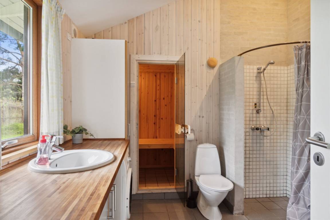 Auf einem großen Wald-/Plantagengrundstück liegt dieses schöne Luxusferienhaus aus Holz, 2008 gebaut, mit nur 400 m zu fantastischem Sandbadestrand mit Sanddünen. Zum Haus gehören mehrere offene Terrassen und ein teilweise überdachte Terrassenareal mit Gartenmöbeln. Innen gibt es Buchenparkettböden, schrägende Holzdecken, teils Holzwände teils verputzte Schieferwände. Nettes Badezimmer mit Duschnische, Fußbodenheizung, 2-Pers.-Whirlpool und direktem Zugang zur Sauna des Hauses. Die offene Küche ist u. a. mit Tiefkühlgerät, Mikrowelle, Geschirrspüler, Herd mit Ceran-Feld und Umluftofen ausgerüstet. Schönes, großes, helles und nett möbliertes Wohnzimmer mit geräumiger Atmosphäre und netten Fenstern sowie schrägenden Decken. Das Wohnzimmer ist mit Wärmepumpe/Aircondition, TV, DVD- und CD-Spieler sowie Radio eingerichtet. Vom Wohnzimmer und allen Zimmern gibt es direkten Ausgang zu den Terrassen. Die Schlafplätze des Hauses verteilen sich auf 2 Zimmer mit Doppelbett sowie 1 Zimmer mit 2 Einzelbetten. Waschmaschine zur Verfügung. Ein sehr hübsches Ferienhaus in einem Gebiet mit vielen Aktivitätsmöglichkeiten, u. a. Golf, Sportangeln und Shopping. Das Haus wird nur an Feriengäste vermietet.