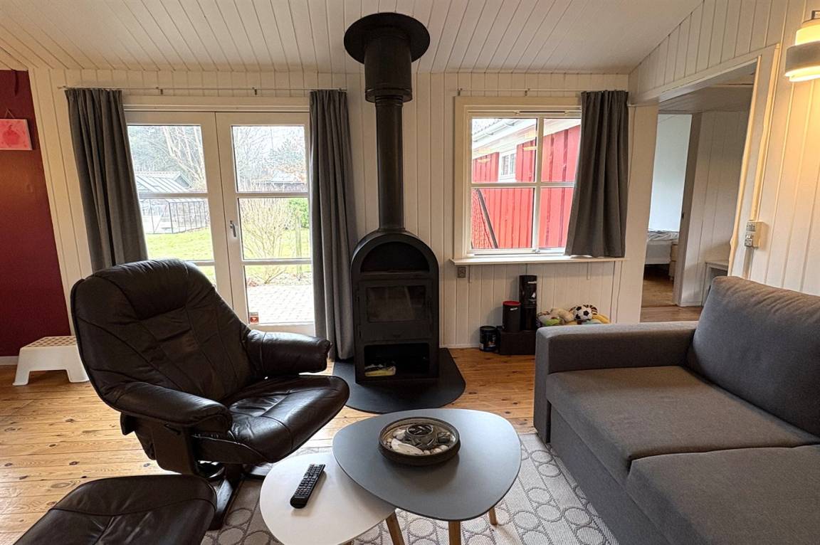 Das Haus wird energieeffizient mit einer Luft-Luft-Wärmepumpe beheizt, und für gemütliche Stunden steht auch ein Kaminofen zur Verfügung.