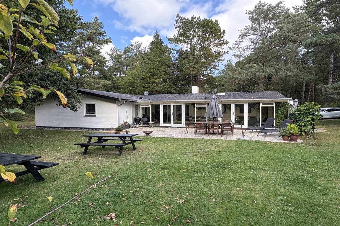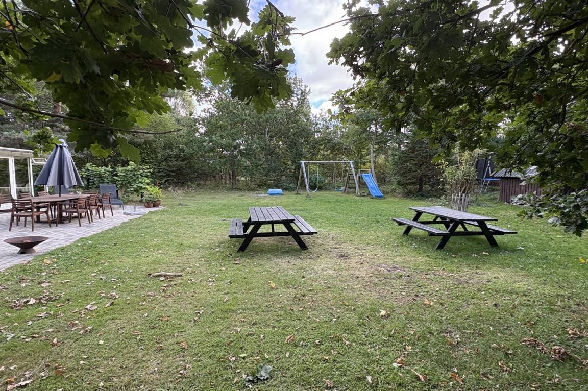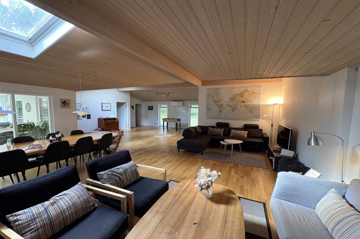 Das Haus lädt zu gemütliche Stunden mit der Familie und guten Freunden ein. In der großen Wohnküche, die direkt mit dem Wohnzimmer verbunden ist, gibt es viel Platz – genau wie in dem hellen und einladenden Wintergarten, der einen Großteil des Jahres genutzt werden kann. Auf der großen gefliesten Terrasse kannst du die Sonne und den Sommer genießen.