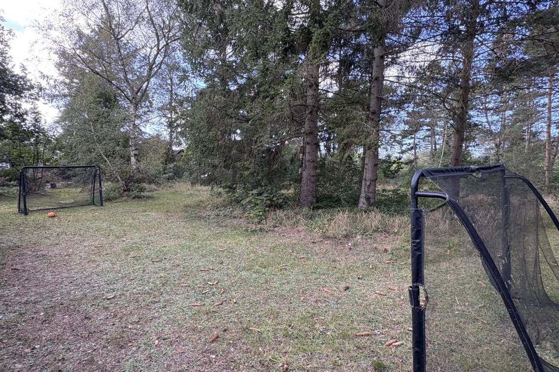 Der große Garten von insgesamt 2.956 m² bietet viel Platz zum Spielen und für Aktivitäten im Freien. Für Kinder gibt es Sandkasten, Schaukel, Rutsche, Trampolin und Fußballtor. Ein Teil des Grundstücks ist naturbelassen mit Bäumen und Büschen – perfekt, um auf Entdeckungstour zu gehen.