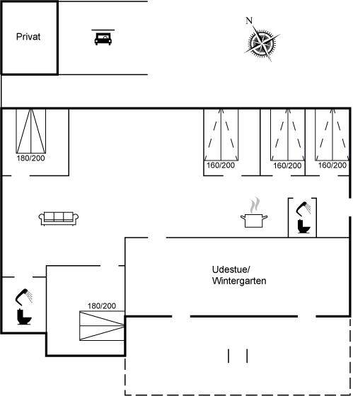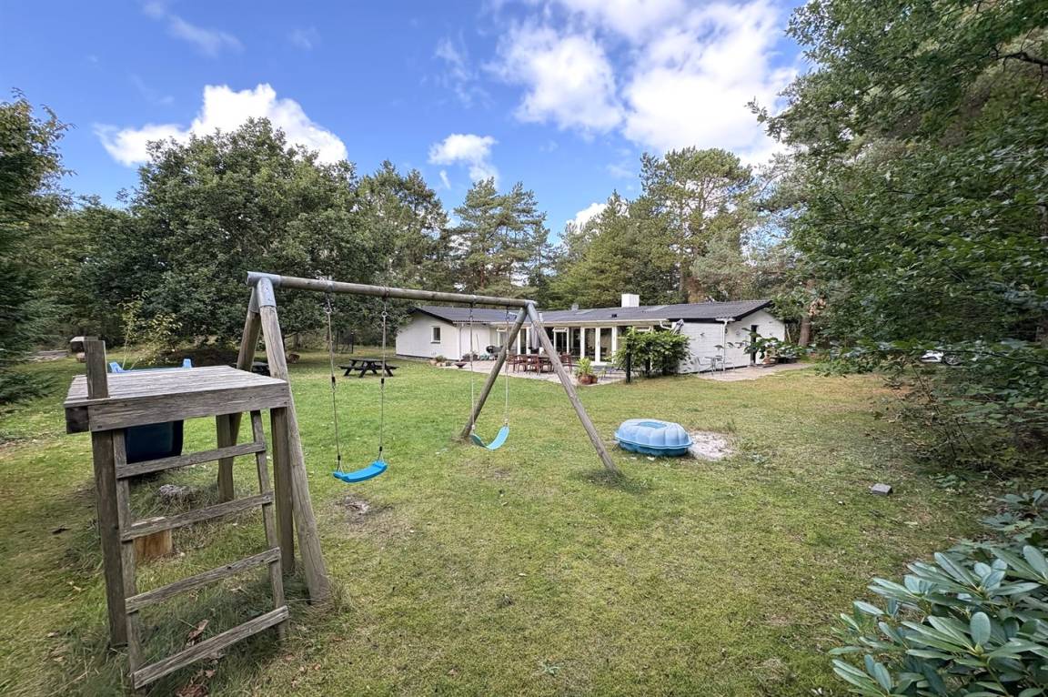 DraußenDie Ferienunterkunft liegt auf einem 2956 m² großen Naturgrundstück. Die Entfernung zum Meer beträgt 1800 m. Die nächste Einkaufsmöglichkeit liegt 3250 m entfernt. In einem Abstand von 3250 m gibt es einen Golfplatz. Es steht ein 50 m² Terrassenareal zur Verfügung. Zutritt zu einem Wintergarten. Schaukel. Sandkasten. Trampolin. Rutsche. Fußballtor. Es steht ein Grill zur Verfügung. Es steht ein Carport zur Verfügung. Parkplatz auf dem Grundstück.
