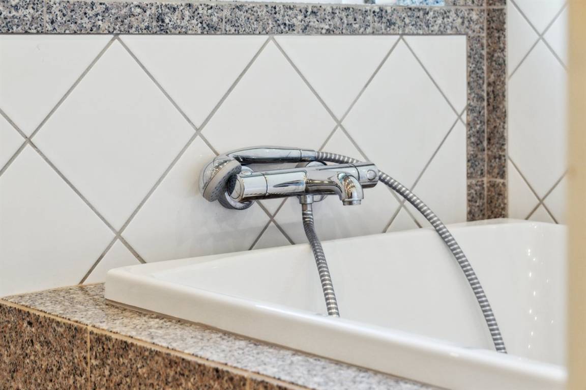 WC und BadEs gibt 1 Badezimmer mit Fußbodenheizung, Duschnische und Badewanne. und 1 Toilette.