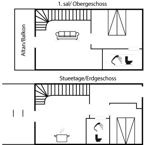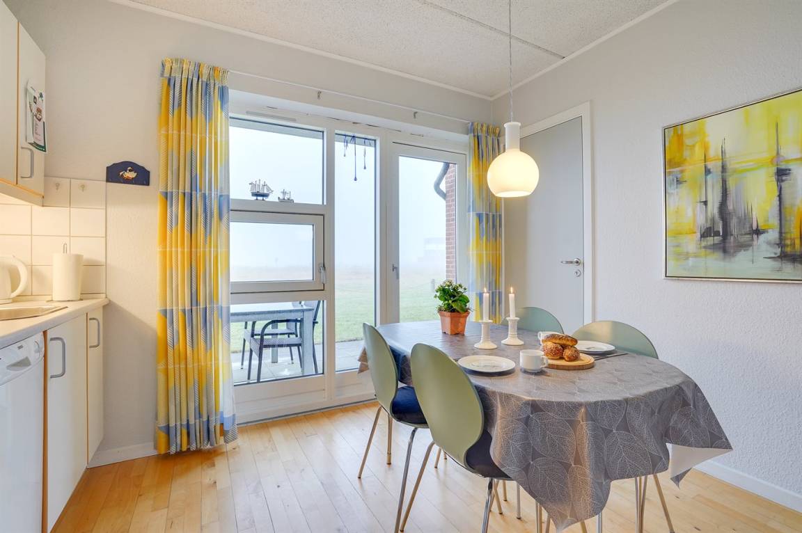 Direkt bei Emmerlev Klev und mit Aussicht auf das Wattenmeer und die Marsch liegt diese moderne Ferienwohnung, 2005 in 2 Etagen aufgeführt. Die Wohnung liegt auf einem 2.000 m² goßen gemeinsamen Naturgrundstück. Zu der Wohnung gehört eine überdachte Terrasse mit Gartenmöbeln. Innen gibt es Klinkerböden im Badezimmer, sonst Holzböden. Das Erdgeschoss ist mit einem schönen Badezimmer mit Dusche, einer netten Küche, die u. a. mit Geschirrspüler ausgestattet ist und einem Schlafzimmer mit Doppelbett eingerichtet. Im Obergeschoss finden Sie ein Wohnzimmer, das mit DVD-Spieler, Stereoanlage mit CD-Spieler, TV, Gemeinschaftsantenne und Doppelschlafcouch ausgestattet ist. Ferner gibt es hier ein zusätzliches Badezimmer mit Dusche und 1 Schlafzimmer mit Doppelbett. Kostenlose Internetverbindung vorh. (eigener Computer muss mitgebracht werden). In der Ferienunterkunft ist eine energiesparender Luft zu Luft Wärmepumpe installiert.
