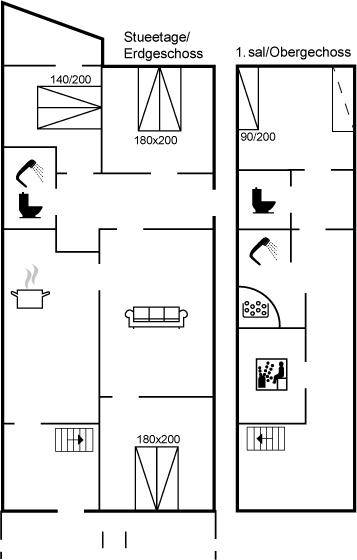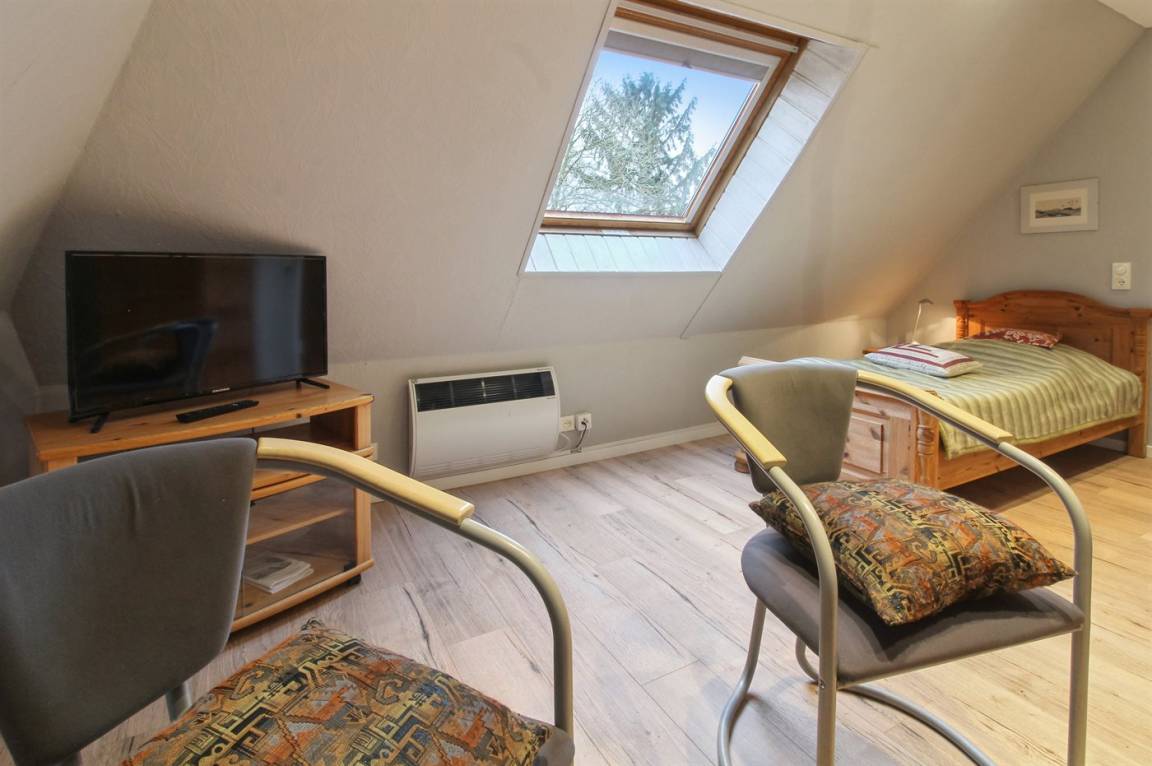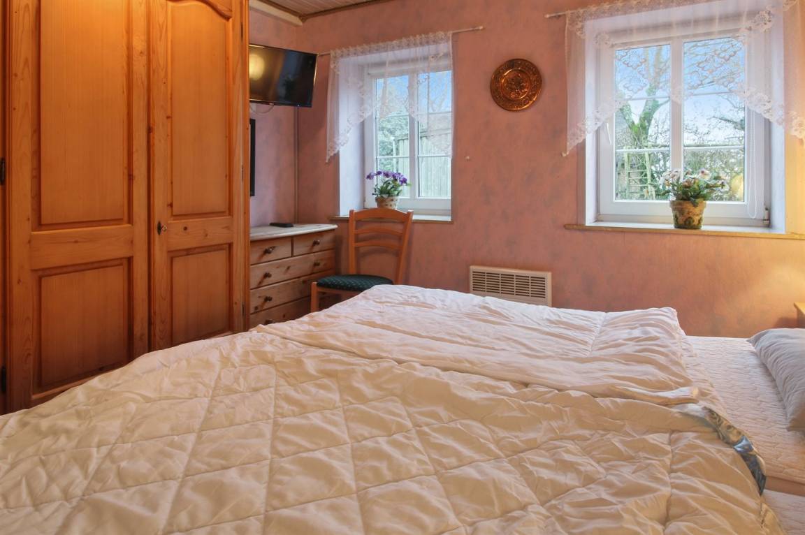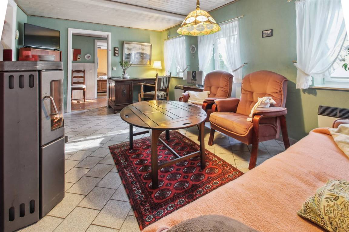 Geräumiges und gemütliches 2-stöckiges Ferienhaus aus Stein, 1860 gebaut und laufend renoviert, auf einem Gartengrundstück gelegen. Zum Haus gehört eine offene Terrasse mit diversen Gartenmöbeln. Holzdecken. 2 Badezimmer; 1 mit Dusche im Erdgeschoss und 1 im Obergeschoss mit Dusche, Waschmaschine, Wäschetrockner und 2-Pers. Whirlpool. Neue, gut ausgestattete Küche mit u.a. Essplatz, Tiefkühlgerät, Geschirrspüler und Mikrowelle. Im Wohnzimmer gibt es Kaminofen, TV mit digitalem Satellitenanschluss, Video und Stereoanlage mit CD-Spieler. 3 Schlafzimmer mit Doppelbett im Erdgeschoss und 1 Schlafzimmer mit 1 Einzelbett sowie 1 Einzelschlafcouch im Obergeschoss. Für die kleinen Feriegäste stehen Kinderbett und Kinderhochstuhl zur Verfügung. Ferner gibt es Sauna und Fitnessgeräte im Obergeschoss. Übrigens: Das Ferienhaus eignet sich für höchstens 6 Personen sowie 2 Kinder (4-11 Jahre) und 1 Kleinkind (0-3 Jahre).