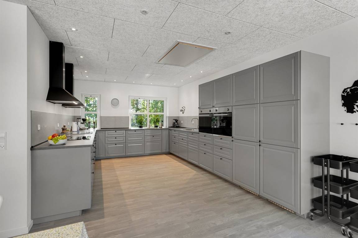 KücheDie Küche ist mit 2 Kühlschränke ausgestattet . Außerdem gibt es 8 Keramik-Kochfelder, 2 Umluftöfen, Mikrowelle sowie 2 Geschirrspüler Fußbodenheizung in der Küche.