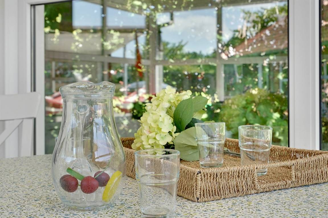 „The local office: Vi kom før tid og meget venlig og imødekommende personale, desuden meget venlig mand der ejer sommerhuset. The holiday home itself: At komme ind i et hus hvor der er småkager og kaffe- det gjorde et stort indtryk. Huset var utrolig skønt med poolområdet/ at vi kunne være så mange i stuen og at der var plads nok. Værelserne med forskelligartet tapet, nipsting, billeder - gav huset et ret personligt præg. Atmosfæren - historien om at det har været en børnehave, tegninger på væggen. Det skønne køkken - med overflod af ting man kunne bruge. Det eneste minus - det trækker helt vildt ind af køkken vinduet til højre.“