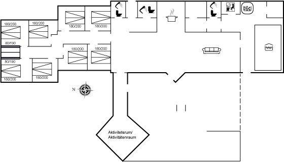 SchlafverhältnisseDie Schlafplätze verteilen sich auf 8 Schlafräume. 16 Schlafplätze in Doppelbetten. 4 Schlafplätze in Etagenbetten. Ferner stehen 2 Kinderbetten zur Verfügung.