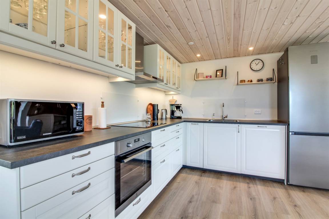 KücheDie Küche ist mit Kühlschrank ausgestattet. Außerdem gibt es 4 Induktions-Kochzonen, Umluftofen, Mikrowelle sowie Geschirrspüler.