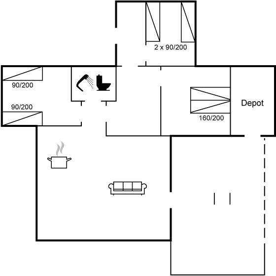 SchlafverhältnisseDie Schlafplätze verteilen sich auf 3 Schlafräume. 2 Schlafplätze in einem Doppelbett. 4 Schlafplätze in Einzelbetten.