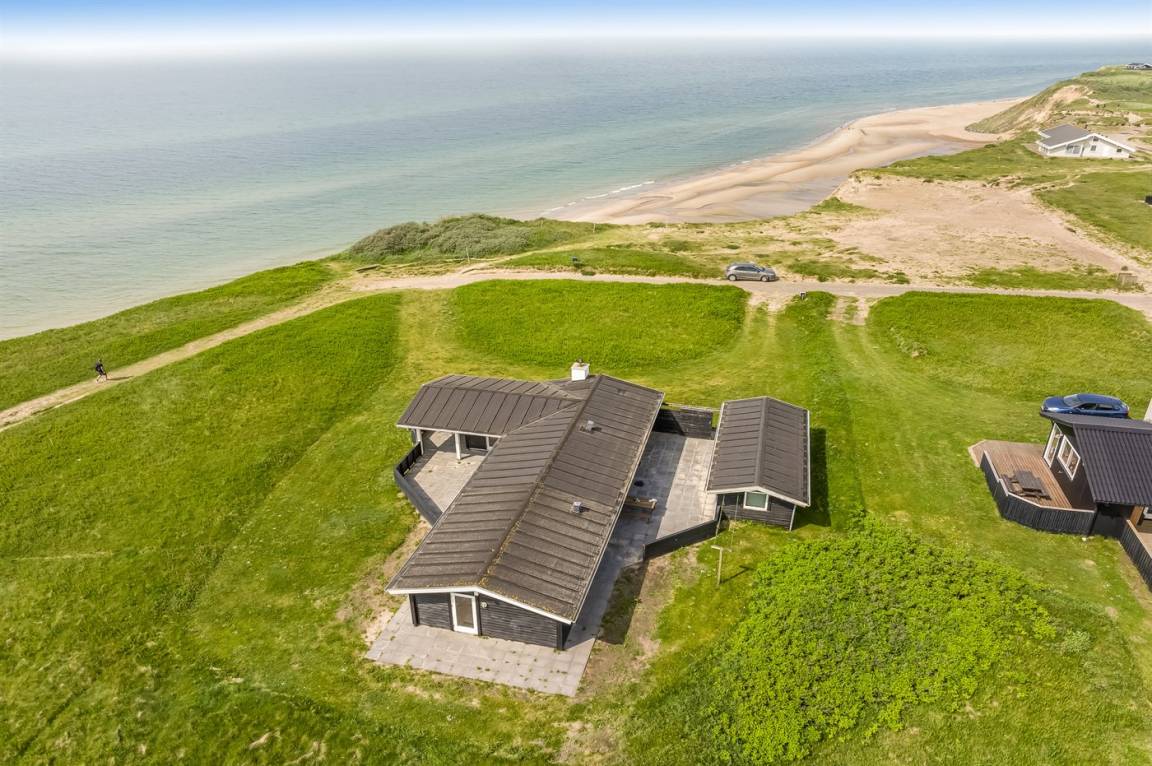 DraußenDie Ferienunterkunft liegt auf einem 2061 m² großen Naturgrundstück. Die Entfernung zum Meer beträgt 75 m. Die nächste Einkaufsmöglichkeit liegt 600 m entfernt. Es steht ein 80 m² Terrassenareal zur Verfügung. Außerdem gibt es 15 m² überdachte Terrasse. Es steht ein Grill zur Verfügung.