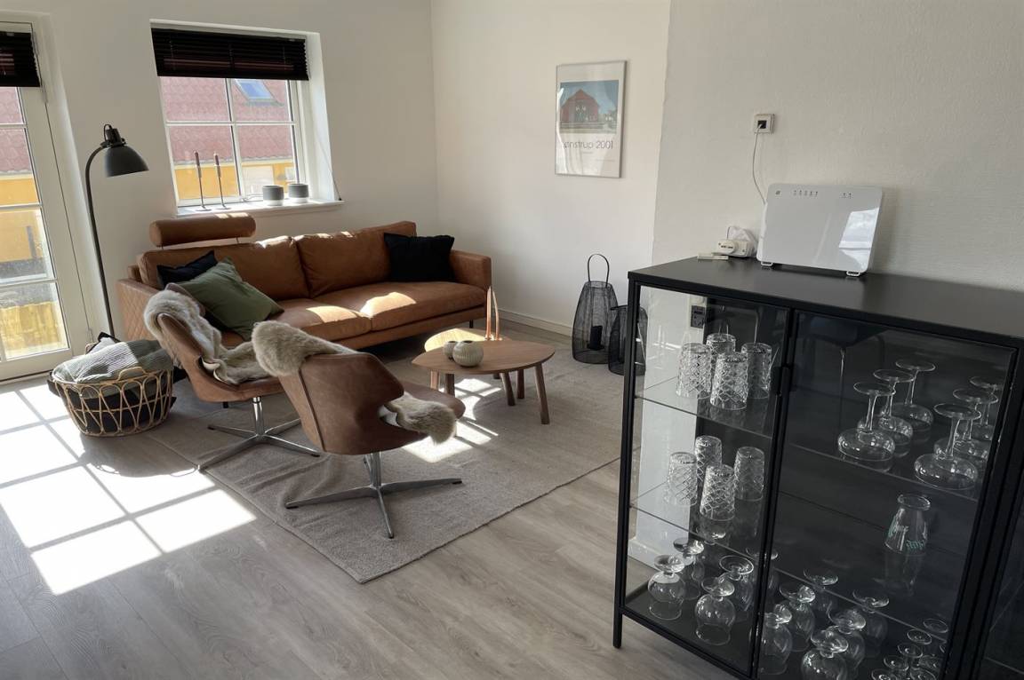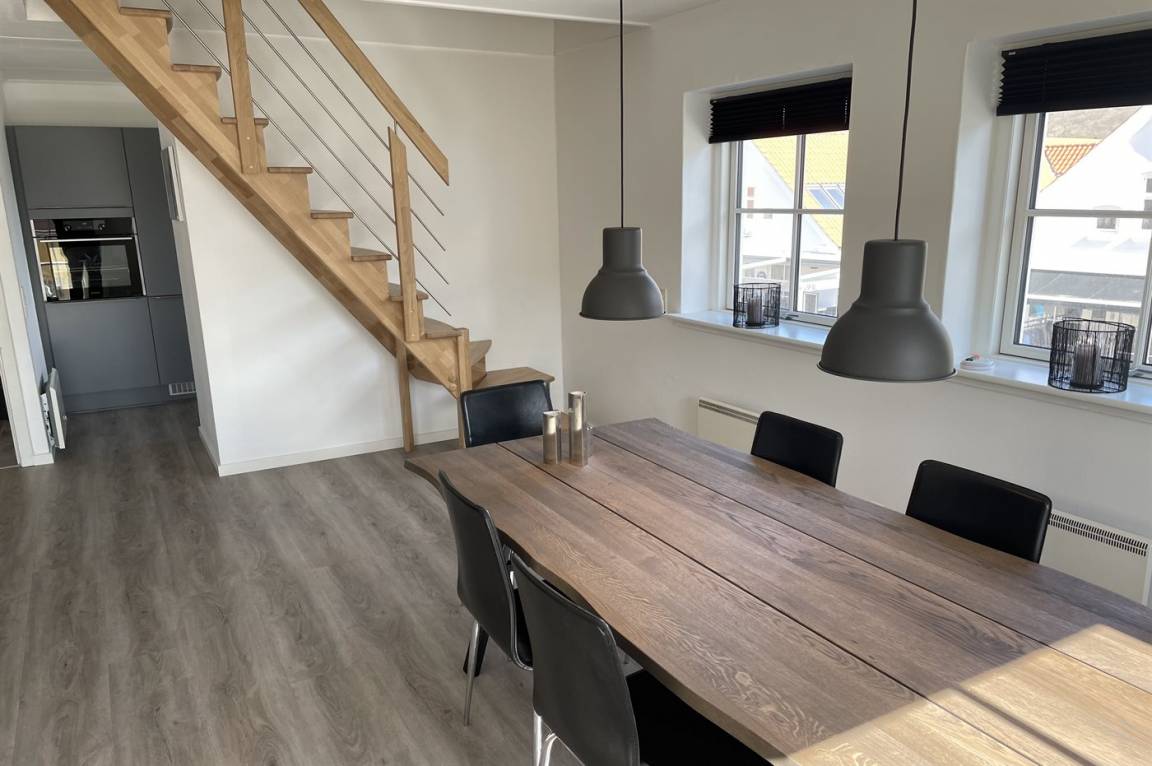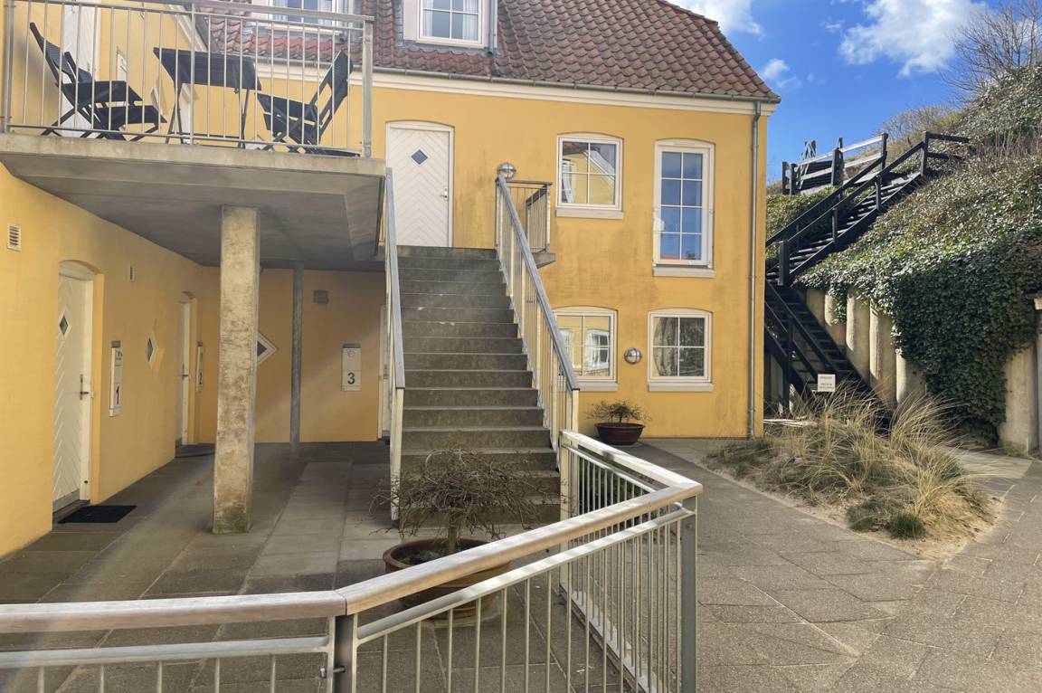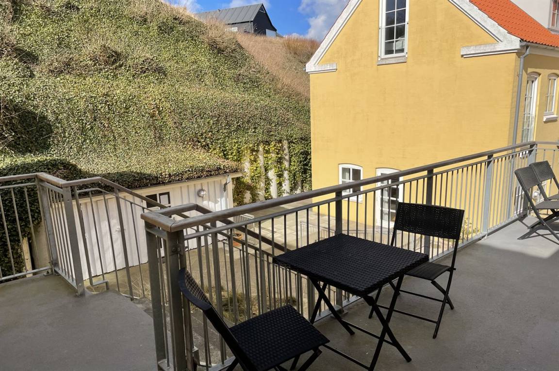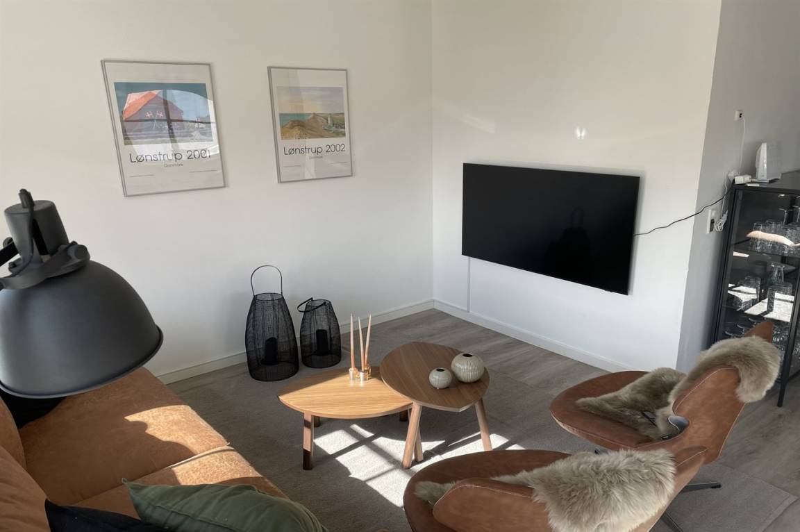 Inmitten des Ferienorts Lønstrup liegt Klitgården, ein Appartementhaus mit 12 Ferienwohnungen. Von dieser 2-stöckigen Ferienwohnung im Obergeschoss gibt es Aussicht über die Hauptstraße und den Ferienort. Gemeinsamer Sonnenhof mit Gartenmöbeln. Ferner gemeinsamer Parkplatz zur Verfügung. Übrigens: 1 von den Schlafplätzen befindet sich in einem Vorraum.