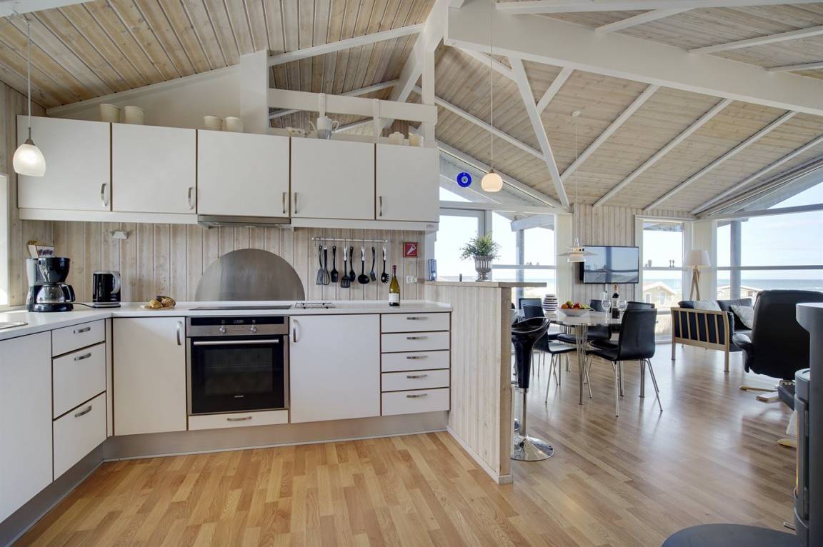 Großartiges, erhöht gelegenes Ferienhaus mit Panoramablick auf die Nordsee. Der Strand befindet sich in Laufweite. Das geräumige Haus verfügt über ein offenes Obergeschoss. In der Nähe befindet sich ein großes Ferienresort mit einem riesigen Aktivitätsangebot für die ganze Familie. Auch der beschauliche Urlaubsort Lønstrup ist nicht weit entfernt.