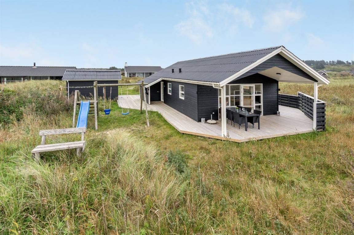 Ein schönes Ferienhaus in ruhiger Sackgassenendlage, umgeben von malerischer Natur. Ein schöner Badestrand und ein großes Ferienresort mit einem großen Aktivitätsangebot für die ganze Familie befinden sich in der Nähe.