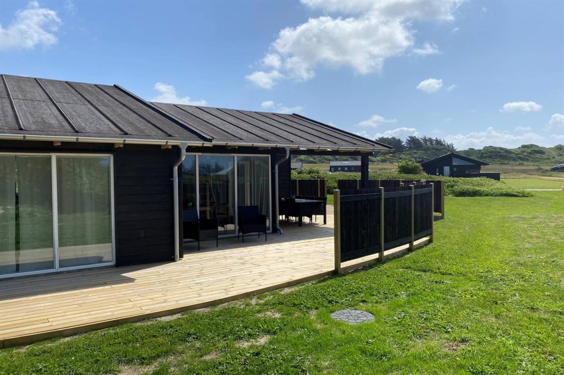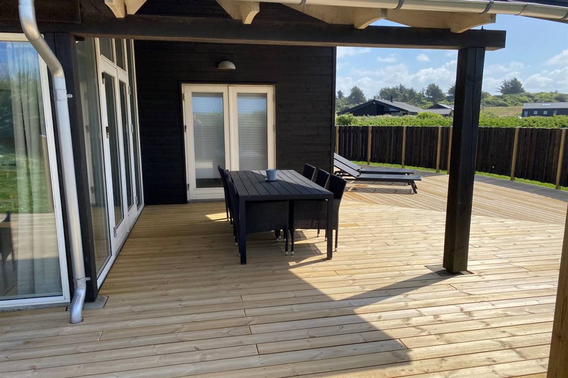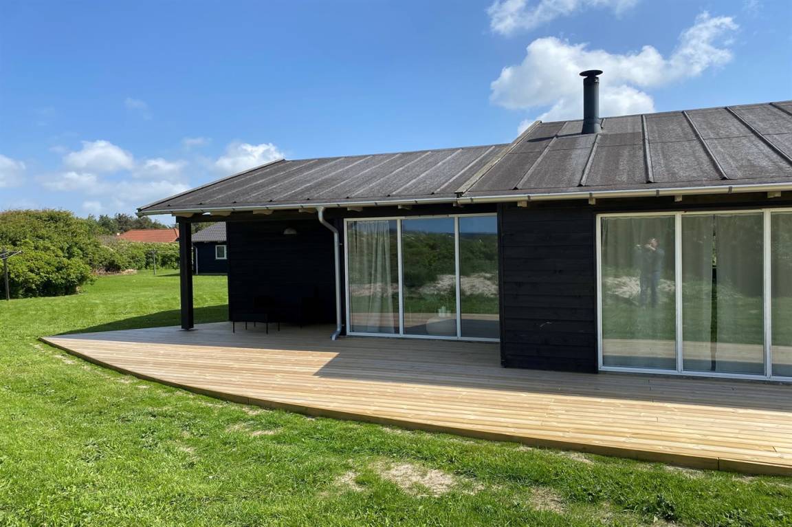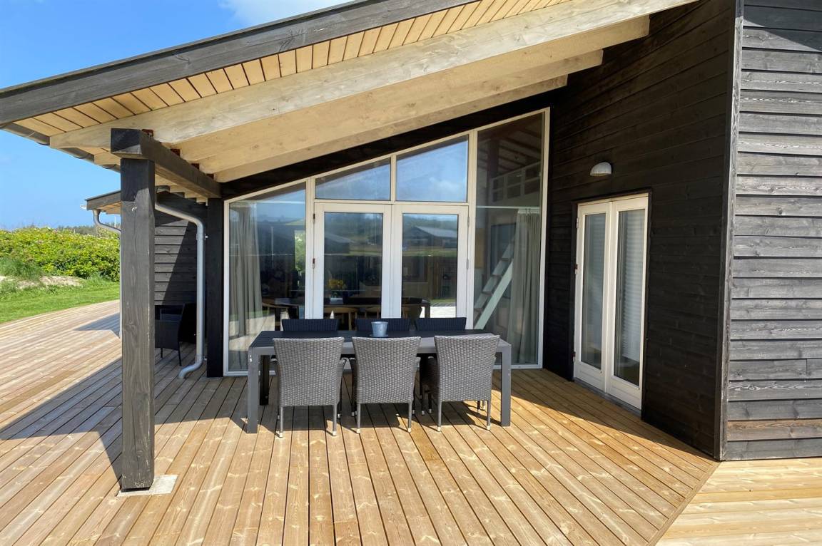 Helles und freundliches Luxusferienhaus aus Holz, 2008 gebaut, auf einem großen Naturgrundstück 400 m vom schönen Badestrand entfernt gelegen. Um das Haus herum gibt es 3 Terrassen mit Gartenmöbeln (sowohl offenes als auch überdachtes Terrassenareal).