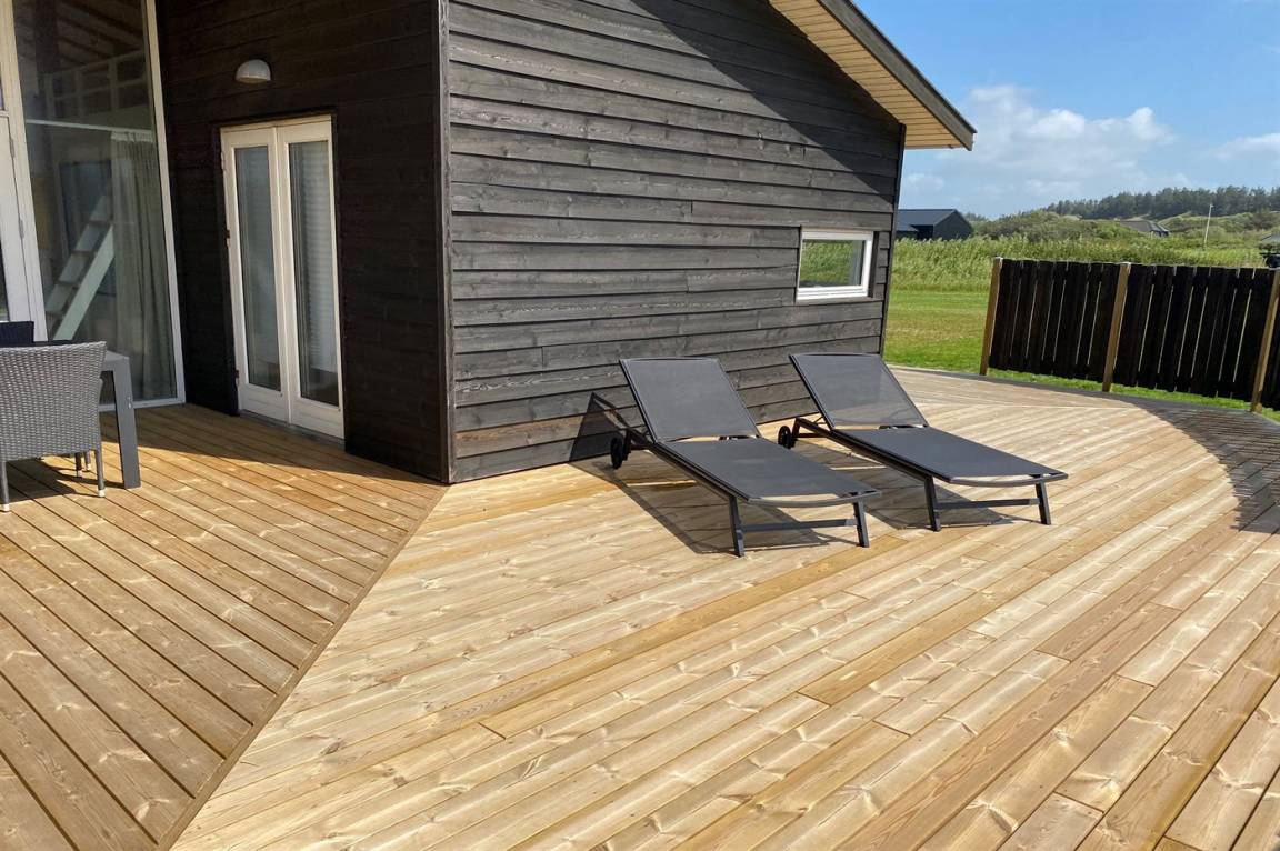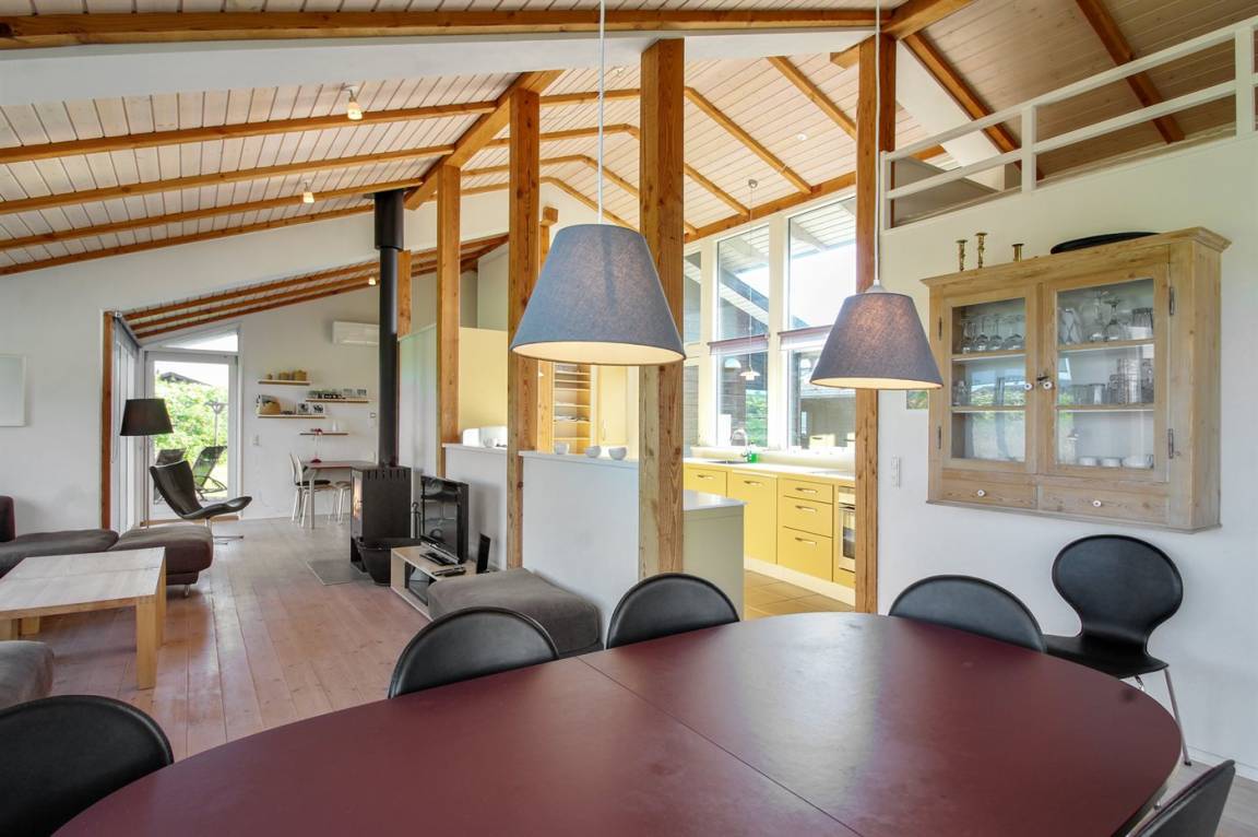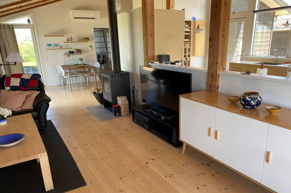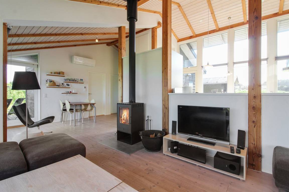 Helles und freundliches Luxusferienhaus aus Holz, 2008 gebaut, auf einem großen Naturgrundstück 400 m vom schönen Badestrand entfernt gelegen. Um das Haus herum gibt es 3 Terrassen mit Gartenmöbeln (sowohl offenes als auch überdachtes Terrassenareal).