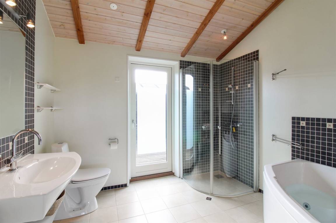Es gibt 2 schöne Badezimmer; 1 großes mit Fußbodenheizung, 2-Pers. Whirlpool und Duschnische und 1 etwas kleineres mit Fußbodenheizung und Duschnische. Schöne Küche mit u. a. Umluftofen, Herd mit Ceran-Feld, Mikrowelle, Tiefkühlgerät und Geschirrspüler. Im Haus gibt es ferner ein Esszimmer mit Zutritt zur überdachten Terrasse sowie ein schönes, großes Wohnzimmer mit Kaminofen, 2 TV, davon 1 mit Smart-TV, digitaler Satellitenanschluss (deutsche und skandinavische Programme), 2 Chromecasts, DVD-Spieler und Stereoanlage mit CD-Spieler. Außerdem kabellose Internetverbindung.