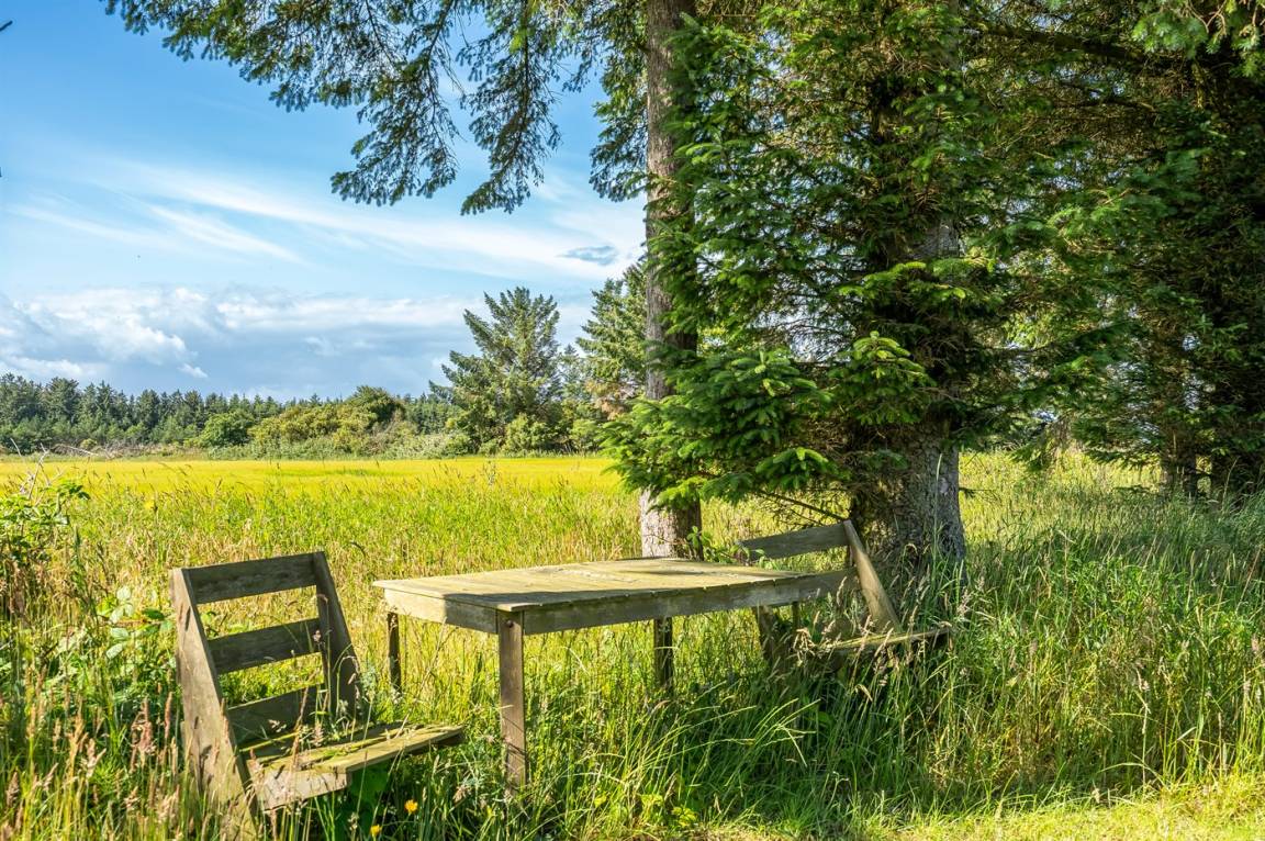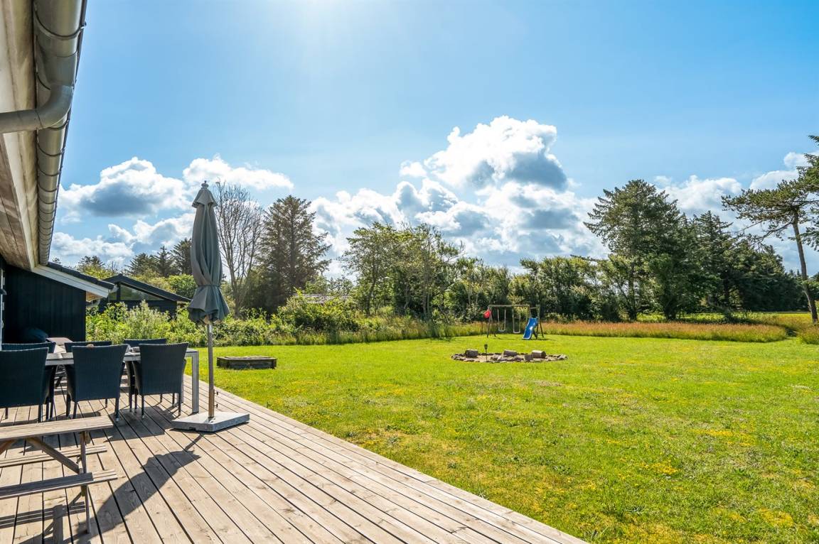 DraußenDie Ferienunterkunft liegt auf einem 3000 m² großen Naturgrundstück. Die Entfernung zum Meer beträgt 1250 m. Die nächste Einkaufsmöglichkeit liegt 750 m entfernt. Es steht ein 200 m² Terrassenareal zur Verfügung. Außerdem gibt es 16 m² überdachte Terrasse. Schaukel. Sandkasten. Rutsche. Fußballtor.Lagerfeuerstelle. Es steht ein Grill zur Verfügung. Parkplatz auf dem Grundstück.