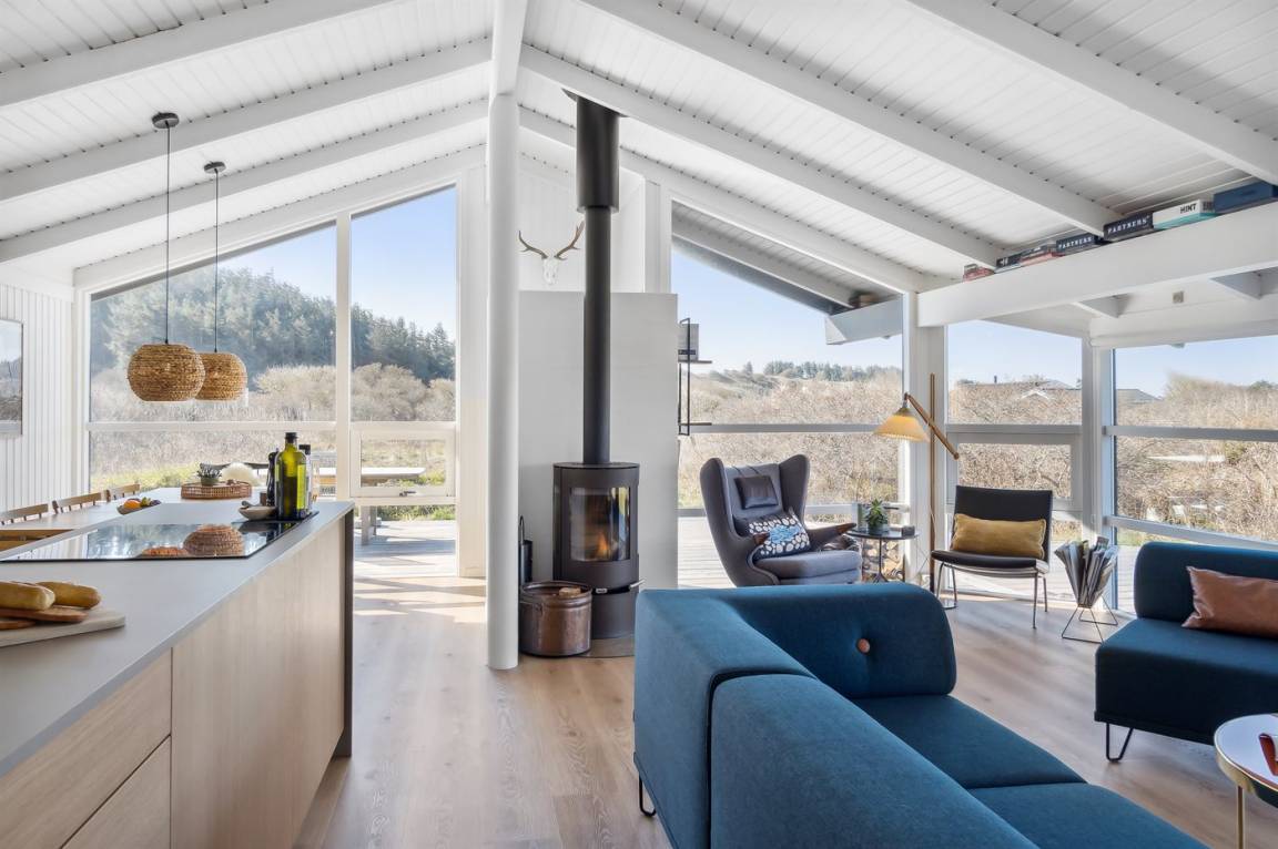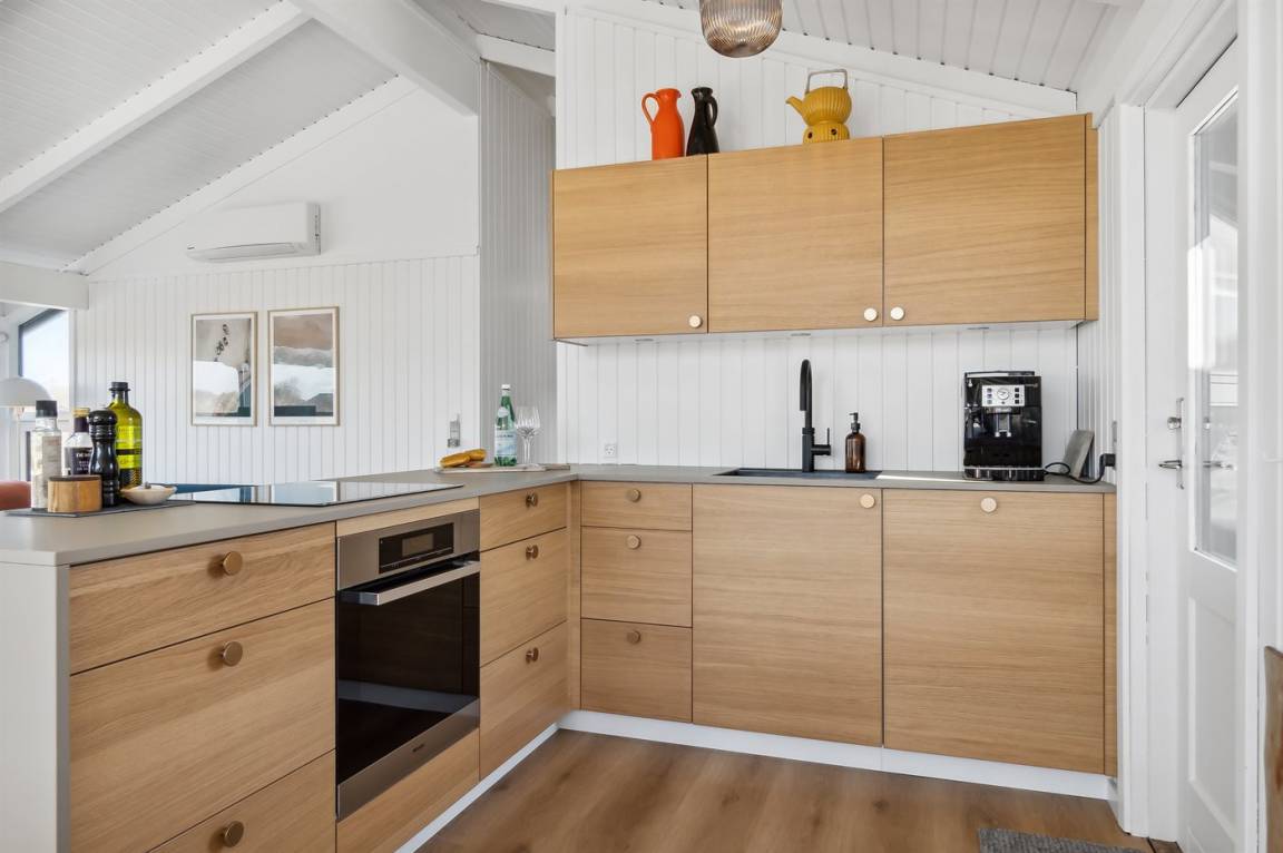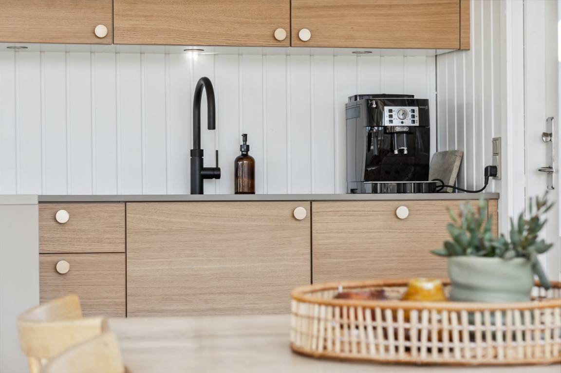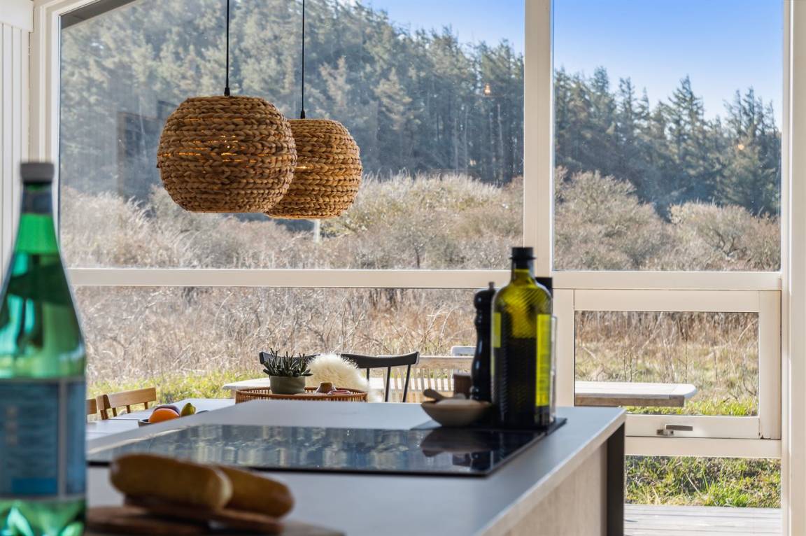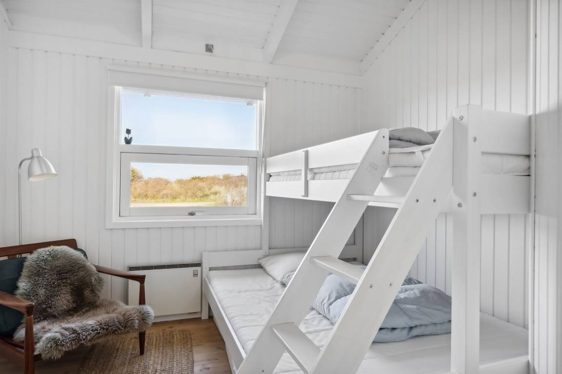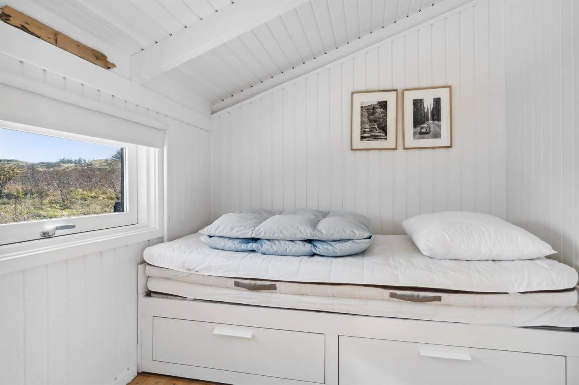 „The holiday home itself: Alt var fint. Køkkenet var lille, men der manglede simpelthen ingenting, lige fra citronpresser til ny espressokaffemaskine. Der var stadig den Alm. Kaffemaskine, hvis man hellere ville bruge den. Der manglede knager i et af værelserne, men vi kunne se, at knagerækken lå parat, så gæsterne efter os har sikkert knagerække. Vi kunne godt have brugt en lille reol til at lægge spil og bøger på. Resten af huset var også fint.“