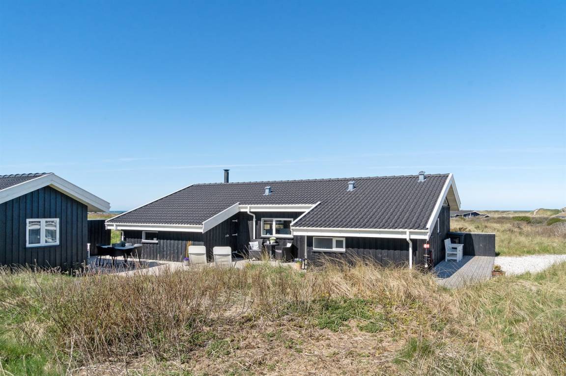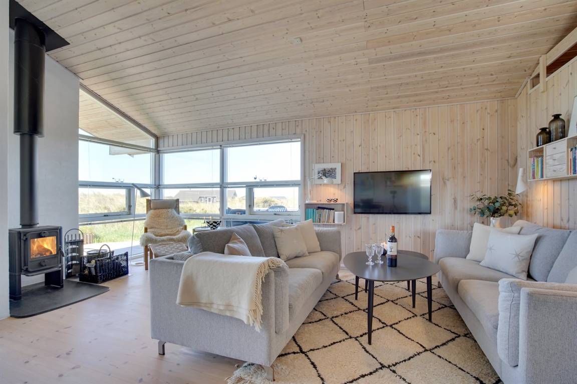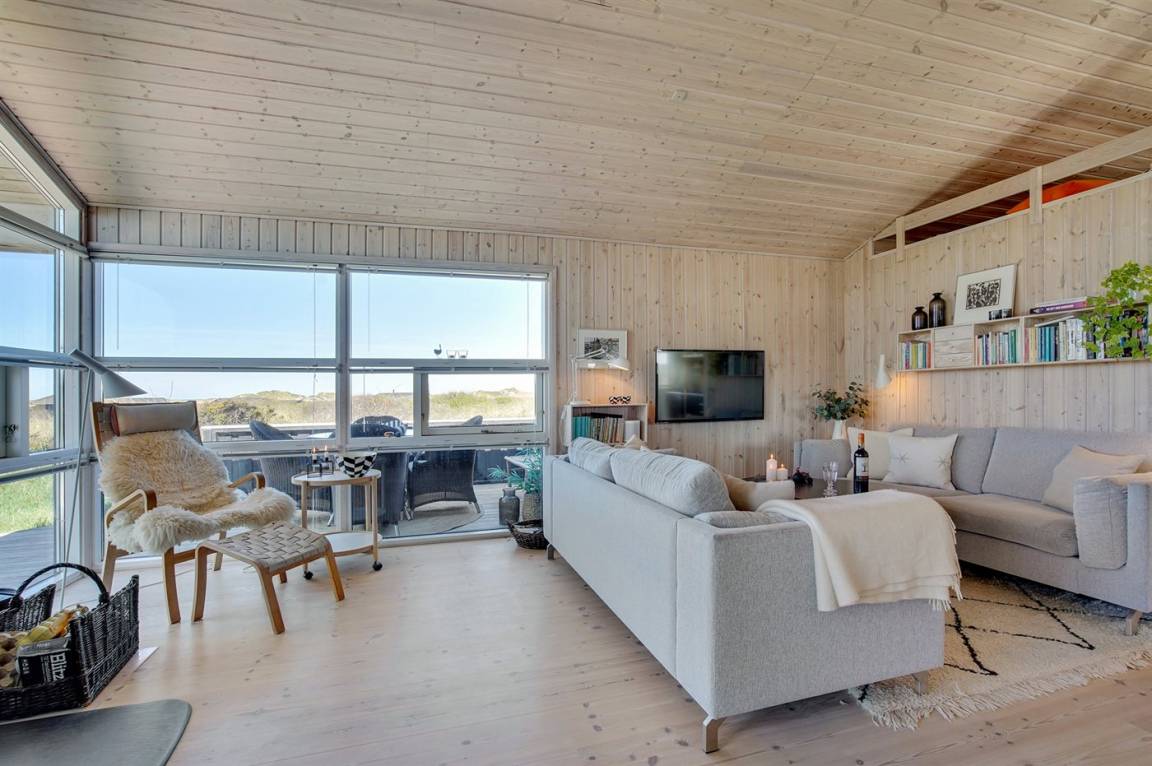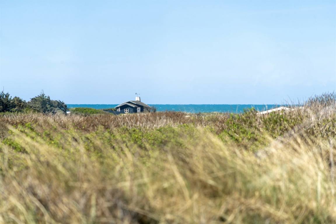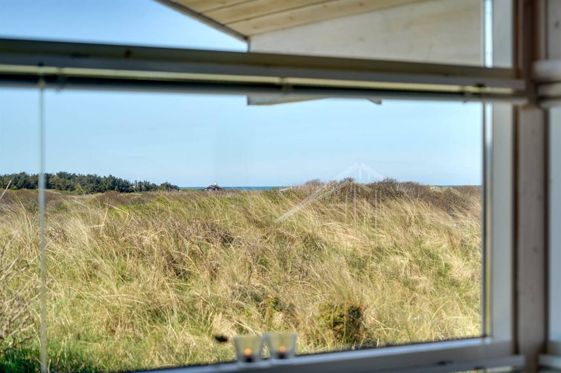 Dieses prachtvolle Ferienhaus liegt auf einem hügeligen Dünengrundstück in Nørlev. Sowohl vom Haus als auch vom Grundstück können Sie das Meer ahnen.
