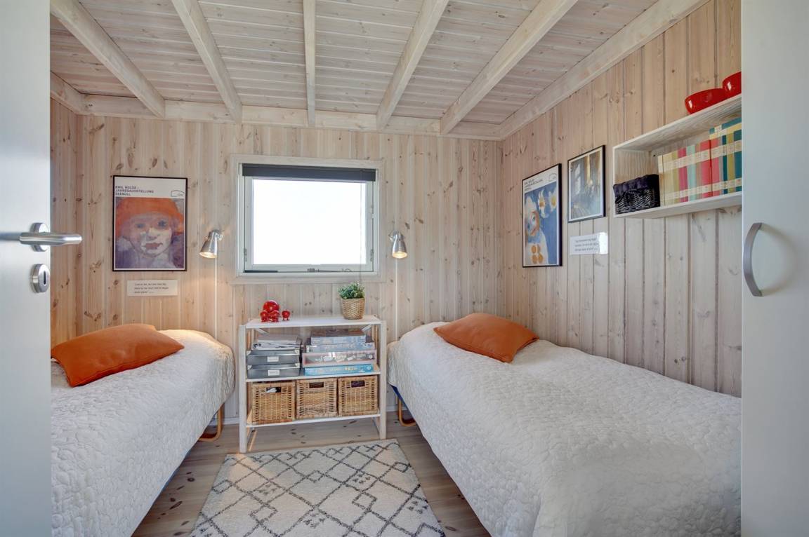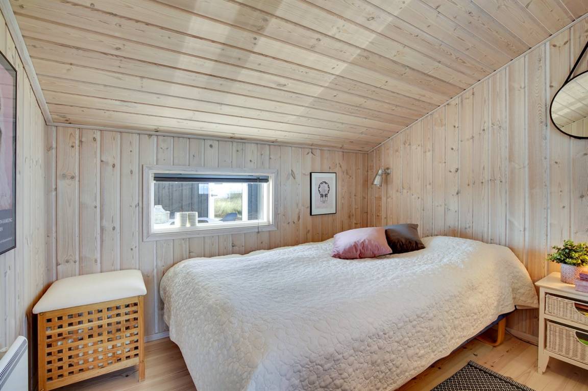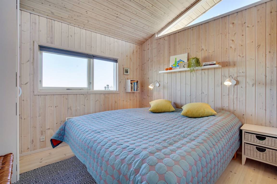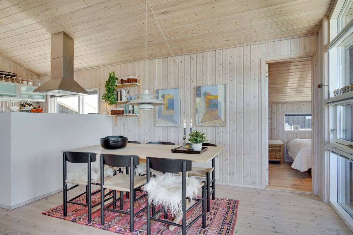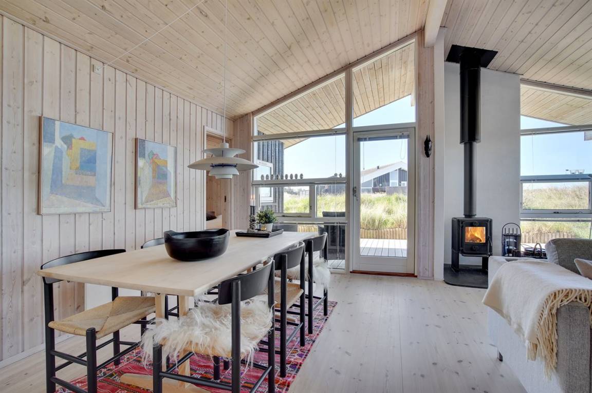 Dieses prachtvolle Ferienhaus liegt auf einem hügeligen Dünengrundstück in Nørlev. Sowohl vom Haus als auch vom Grundstück können Sie das Meer ahnen.