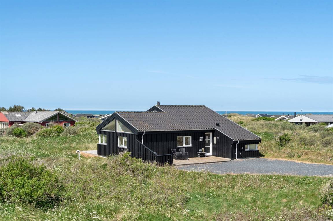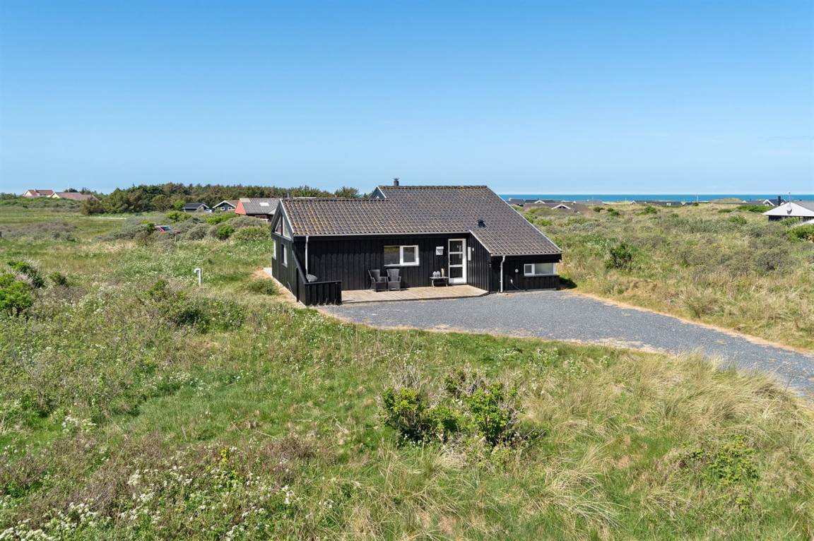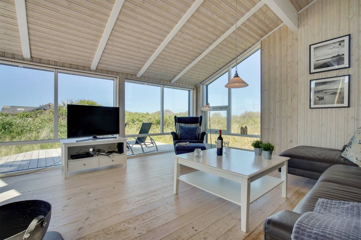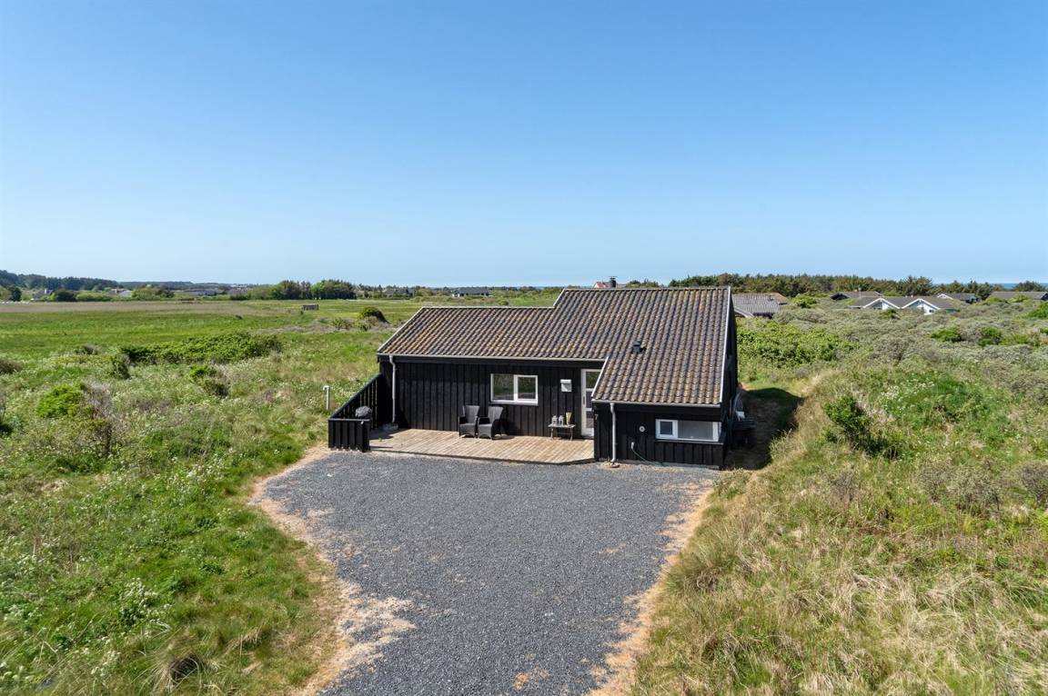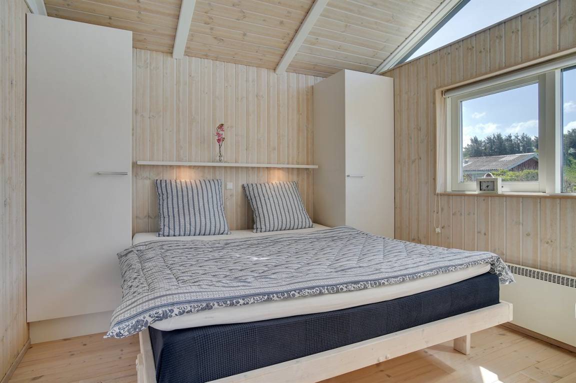 Hübsches, neugebautes Luxusferienhaus auf einem schönen Naturgrundstück in Nörlev gelegen. Das Has erscheint hell und freundlich und ist mit allen modernen Bequemlichkeiten eingerichtet. Sowohl vom Haus als auch vom Grundstück haben Sie eine hübsche Aussicht über die Binnenlanddünen. Zum Haus gehört eine schöne Terrasse mit Gartenmöbeln - hier können Sie die Sonne und eine Mahlzeit im Freien genießen. Die moderne Küche mit Essplatz ist u. a. mit Geschirrspüler, Mikrowelle, Tiefkühlgerät, Umluftofen und Herd mit Ceran-Feld ausgestattet. Das geräumige Wohnzimmer mit großer Fensterfront und Zutritt zur Terrasse ist mit Kaminofen, DVD-Spieler, TV und Gemeinschaftsantenne eingerichtet. Die Schlafplätze verteilen sich auf 3 gute Zimmer; 2 mit Doppelbett sowie 1 mit Doppelbett und 1 Kojenplatz. Hübsches Badezimmer mit Fußbodenheizung, Duschnische, 2-Pers. Whirlpool und Zutritt zur Sauna. Ferner stehen kostenlose Internetverbindung (eigener Computer muss mitgebracht werden), Waschmaschine sowie Wäschetrockner zur Verfügung und es ist eine energiegerechte Wärmepumpe installiert. Teils Holzböden, teils Klinkerböden. Ein schönes Ferienhaus in naturschöner Umgebung und im Gehabstand von der Ferienanlage Skallerup Klit Feriencenter mit vielen Sportsaktivitäten, Erlebnisbad und römischem Bad entfernt.