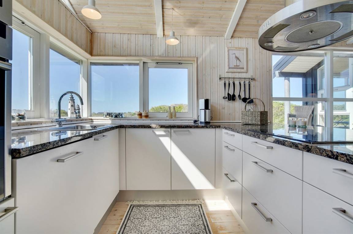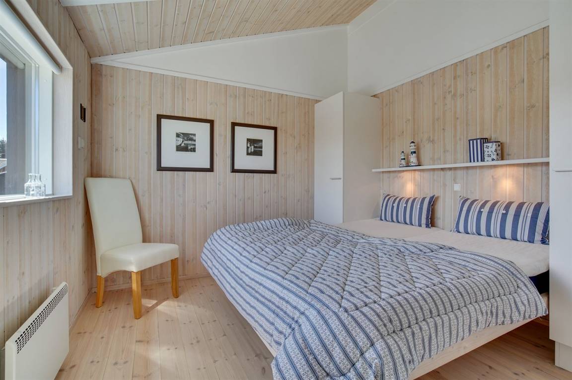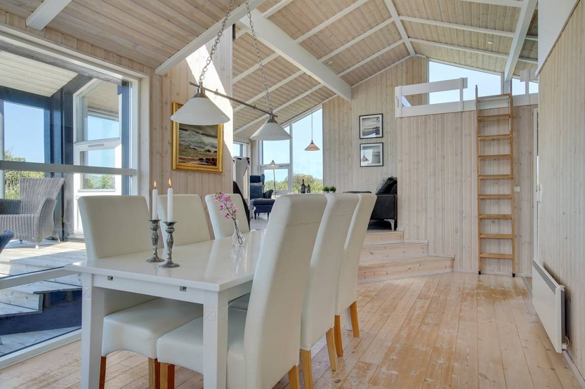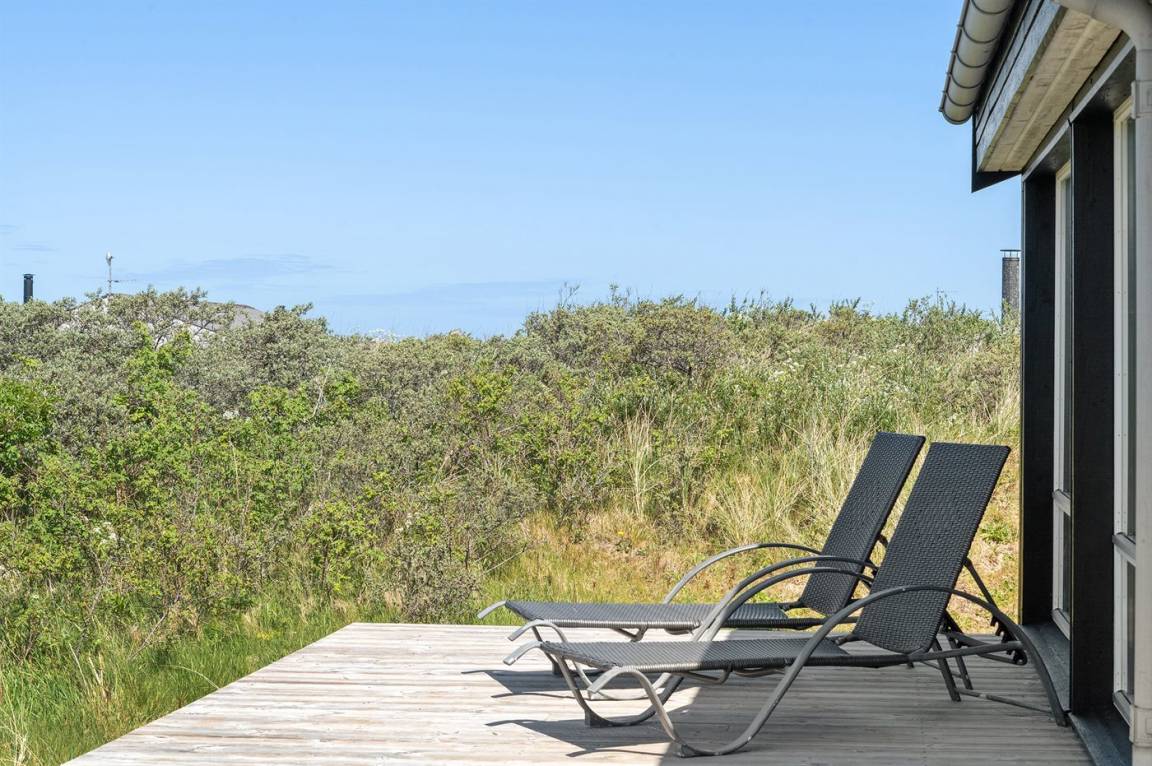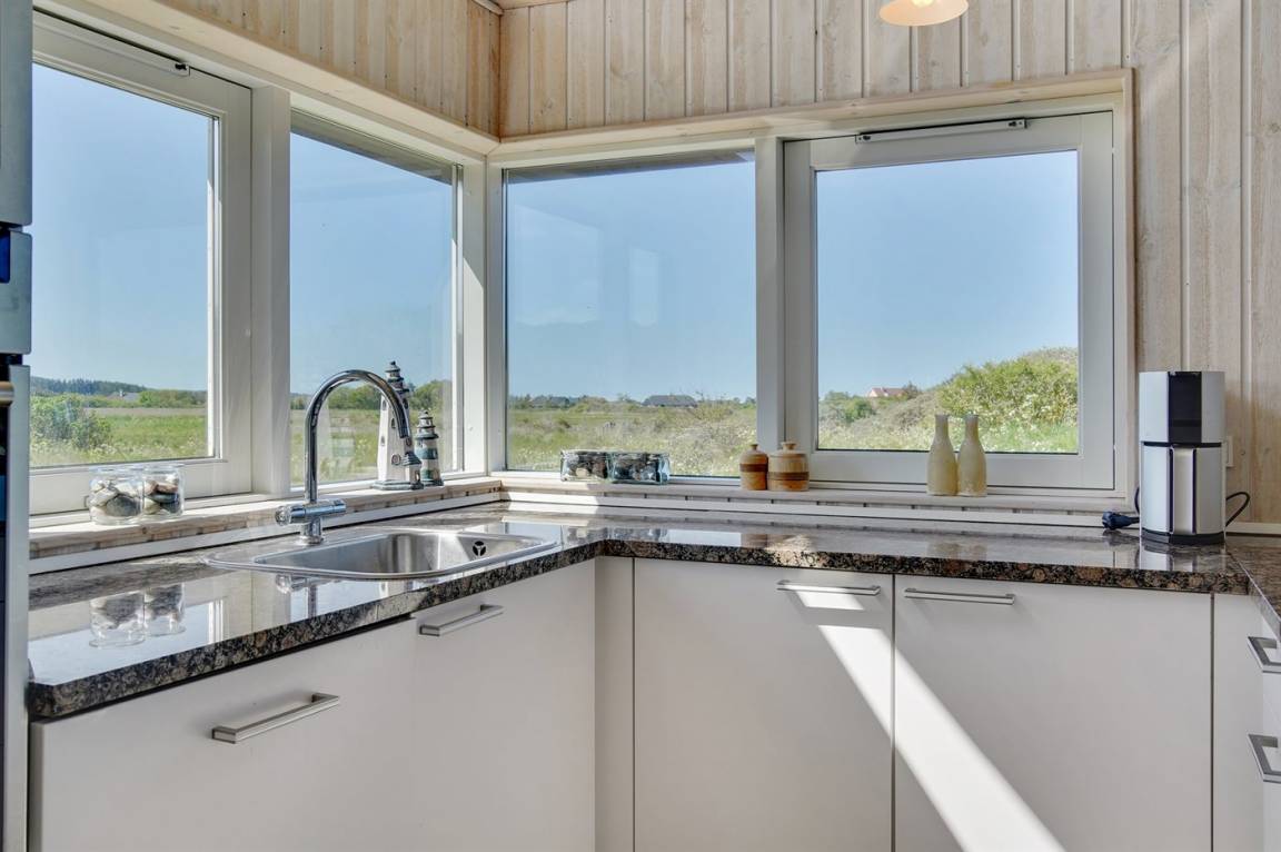 Hübsches, neugebautes Luxusferienhaus auf einem schönen Naturgrundstück in Nörlev gelegen. Das Has erscheint hell und freundlich und ist mit allen modernen Bequemlichkeiten eingerichtet. Sowohl vom Haus als auch vom Grundstück haben Sie eine hübsche Aussicht über die Binnenlanddünen. Zum Haus gehört eine schöne Terrasse mit Gartenmöbeln - hier können Sie die Sonne und eine Mahlzeit im Freien genießen. Die moderne Küche mit Essplatz ist u. a. mit Geschirrspüler, Mikrowelle, Tiefkühlgerät, Umluftofen und Herd mit Ceran-Feld ausgestattet. Das geräumige Wohnzimmer mit großer Fensterfront und Zutritt zur Terrasse ist mit Kaminofen, DVD-Spieler, TV und Gemeinschaftsantenne eingerichtet. Die Schlafplätze verteilen sich auf 3 gute Zimmer; 2 mit Doppelbett sowie 1 mit Doppelbett und 1 Kojenplatz. Hübsches Badezimmer mit Fußbodenheizung, Duschnische, 2-Pers. Whirlpool und Zutritt zur Sauna. Ferner stehen kostenlose Internetverbindung (eigener Computer muss mitgebracht werden), Waschmaschine sowie Wäschetrockner zur Verfügung und es ist eine energiegerechte Wärmepumpe installiert. Teils Holzböden, teils Klinkerböden. Ein schönes Ferienhaus in naturschöner Umgebung und im Gehabstand von der Ferienanlage Skallerup Klit Feriencenter mit vielen Sportsaktivitäten, Erlebnisbad und römischem Bad entfernt.