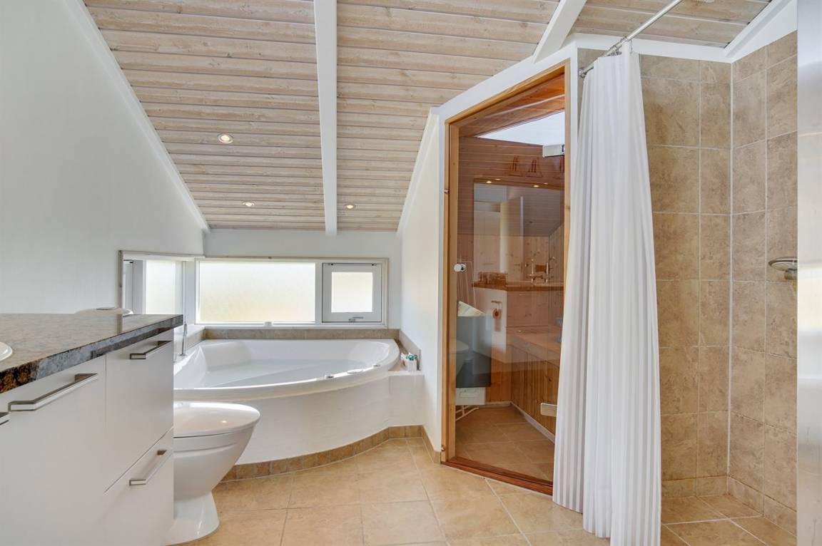 „Advice to other guests: Meget hyggeligt hus med dejlig fri beliggenhed med kig til natur. Dog lidt mangelfuldt inventar i køkkenet og manglende vejledning til spa'en. The vacation at the holiday home: Vi havde en del problemer med spa'en, som vi ikke kunne få til at varme op. Der var ikke nogen manual til spa'en i sommerhuset. Vi ringede til Sol og Strand, og der kom meget hurtigt en tekniker ud og løste problemet (det var en kontakt gemt inde i saunaen, der ikke var slået til). Køkkenets inventar var noget mangelfuld. Helt basale hjælpemidler såsom rivejern, håndmixer, decilitermål og ovnfast fad var der ikke. Panderne var i dårlig stand og ujævne i bunden. Ellers et meget hyggeligt hus med skøn beliggenhed med frit udsyn til naturen. Cleanliness: Der var ikke rengjort på hemsen og i køkkenets skuffer og skabe, og der hang spindelvæv flere steder højt under loftet.“