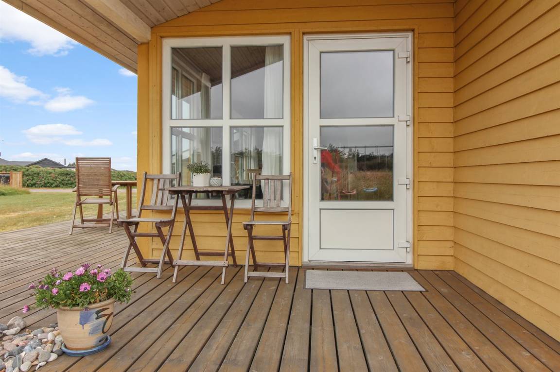 DraußenDie Ferienunterkunft liegt auf einem 1770 m² großen Naturgrundstück. Die Entfernung zum Meer beträgt 400 m. Die nächste Einkaufsmöglichkeit liegt 1500 m entfernt. Es steht ein 33 m² Terrassenareal zur Verfügung. Außerdem gibt es 7 m² überdachte Terrasse. Geräteraum. Schaukel. Sandkasten. Parkplatz auf dem Grundstück.