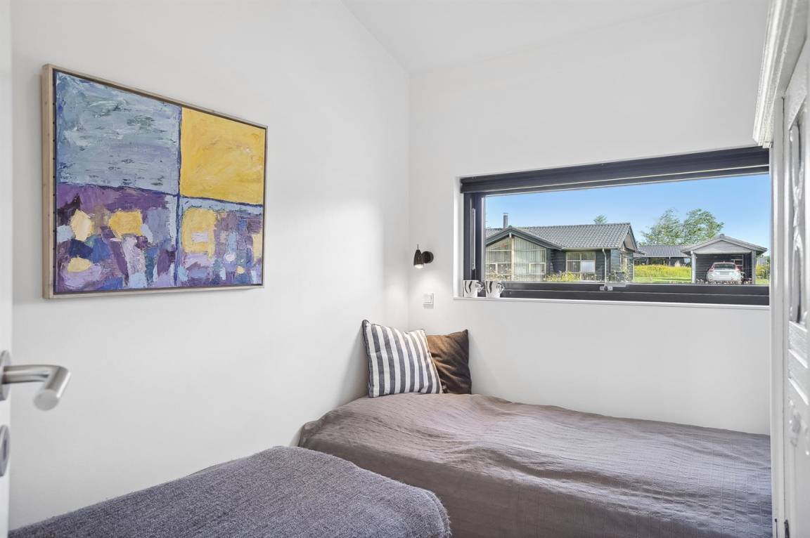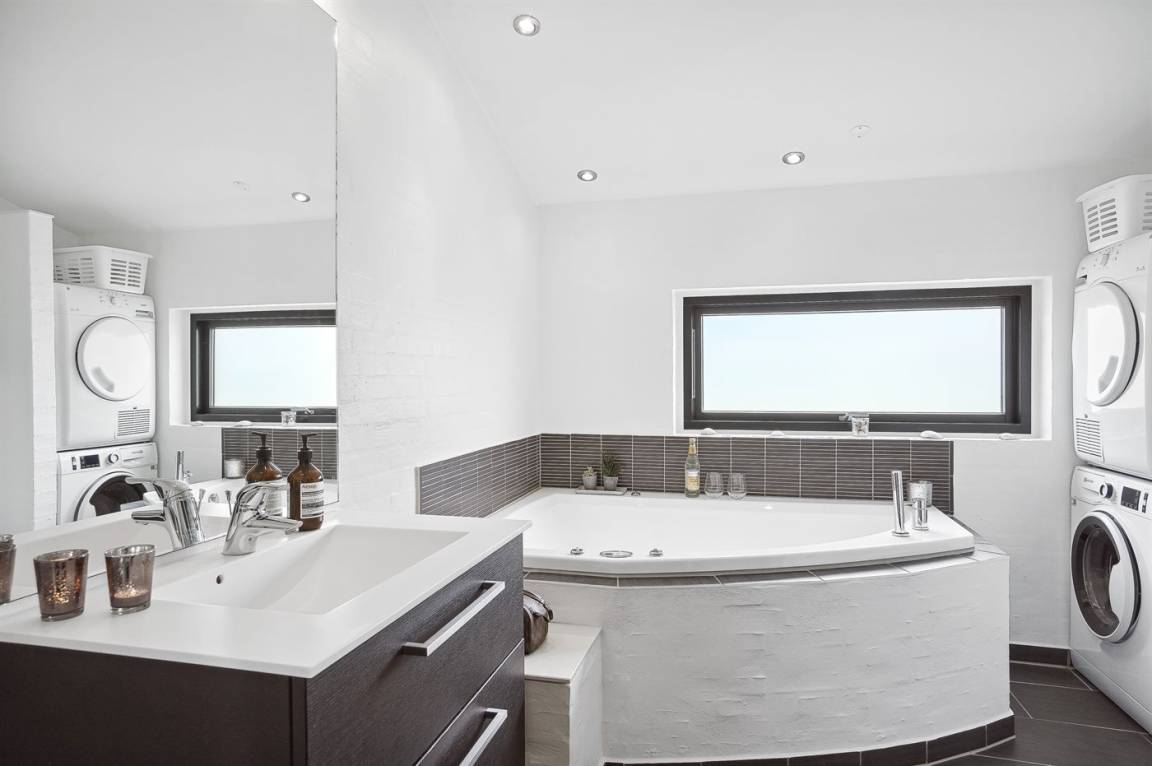 Ein herrliches, ganz neues Ferienhaus mit allen modernen Einrichtungen - am Rande des idyllischen Fischerdorfs Lønstrup gelegen. Eine steile Treppe führt in ein offenes Obergeschoss, wo sich die 2 Schlafplätze auf Matratzen befinden.