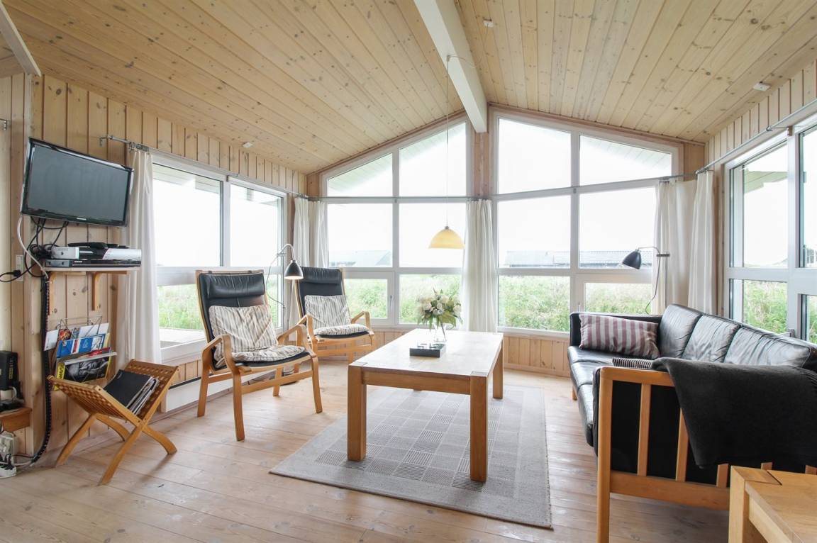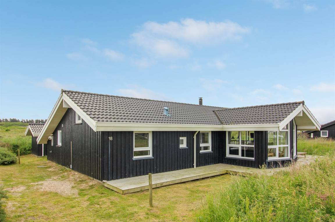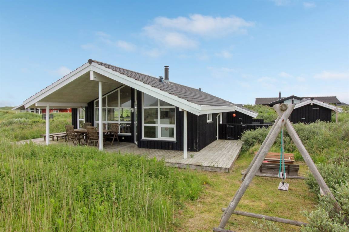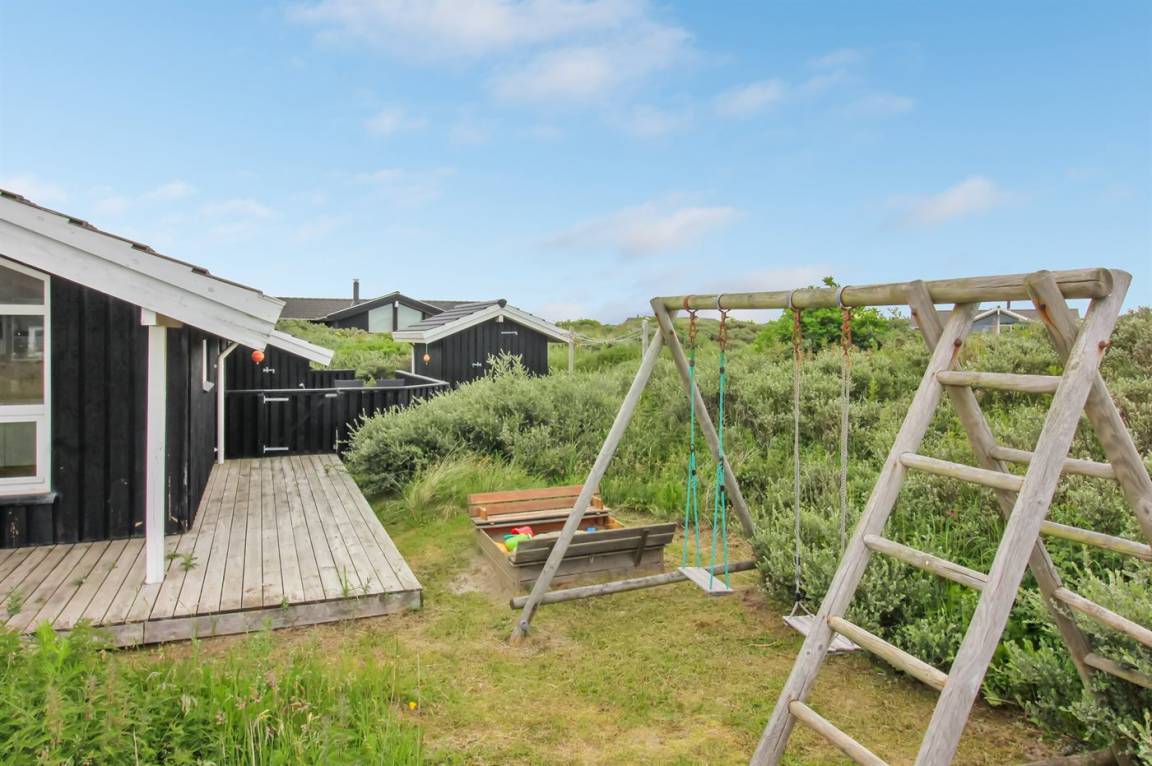 DraußenDie Ferienunterkunft liegt auf einem 1573 m² großen Dünengrundstück. Die Entfernung zum Meer beträgt 200 m. Die nächste Einkaufsmöglichkeit liegt 1500 m entfernt. Es steht ein 40 m² Terrassenareal zur Verfügung. Außerdem gibt es 20 m² überdachte Terrasse. Geräteraum. Schaukel. Sandkasten. Parkplatz auf dem Grundstück.