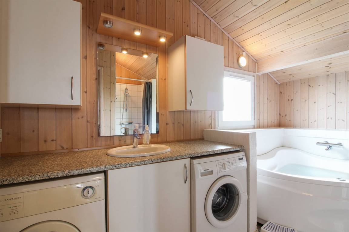 „The vacation at the holiday home: Ferienhaus war bei Ankunft nicht sauber: Dicke Staubflusen im Schlafzimmer, Handstaubsauger dreckig, Waschmaschine und Trockner nicht sauber, einige Küchenutensilien nicht sauber, Grillrost absolut dreckig Küche ein wenig ungepflegt, überall standen und lagen unnütze Dinge herum, keine Ordnung des Geschirrs und Küchenutensilien in den Schränken. Alles ein wenig chaotisch durcheinander. Abgebrannte Teelichter in den Windlichter. Ferienhaus erst bewohnbar und nett nachdem wir ein wenig geputzt und Ordnung geschaffen haben :) Wir haben das Ferienhaus mit 4 Personen bewohnt und hatten dadurch Platz für all die Tagesdecken/Kissen und einen Teil unseres Gepäcks im sogenannten Kinderzimmer. Sonst hätten wir Platzprobleme gehabt. :)“