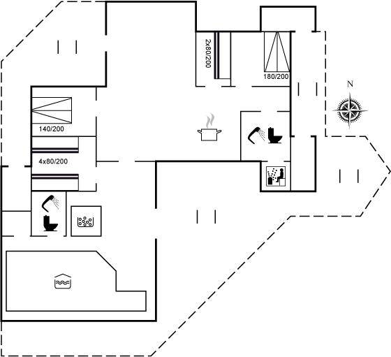 SchlafverhältnisseDie Schlafplätze verteilen sich auf 4 Schlafräume. 4 Schlafplätze in Doppelbetten. 6 Schlafplätze in Etagenbetten. 2 Schlafplätze auf Matratzen. 2 von diesen Schlafplätzen befinden sich im offenen Obergeschoss. Ferner steht ein Kinderbett zur Verfügung.