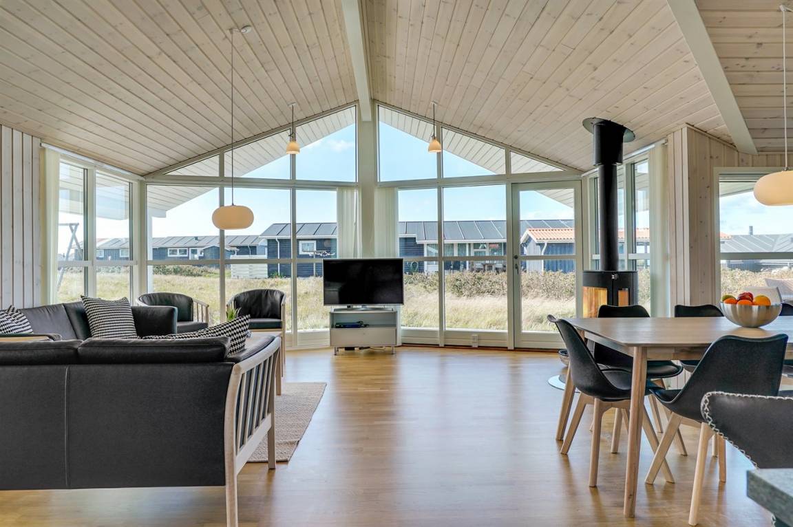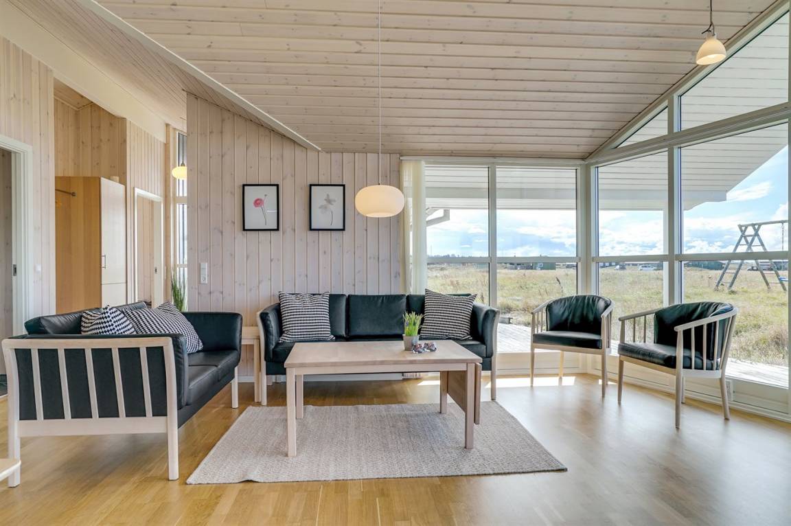 Dieses schöne Ferienhaus liegt auf einem Dünengrundstück – nur 150 m vom guten Badestrand entfernt. Schöner Meeresblick sowohl vom Haus als auch vom Grundstück. Das Haus liegt nicht weit von der Ferienanlage "Skallerup Klit Feriecenter" mit u. a. Erlebnisbad entfernt.