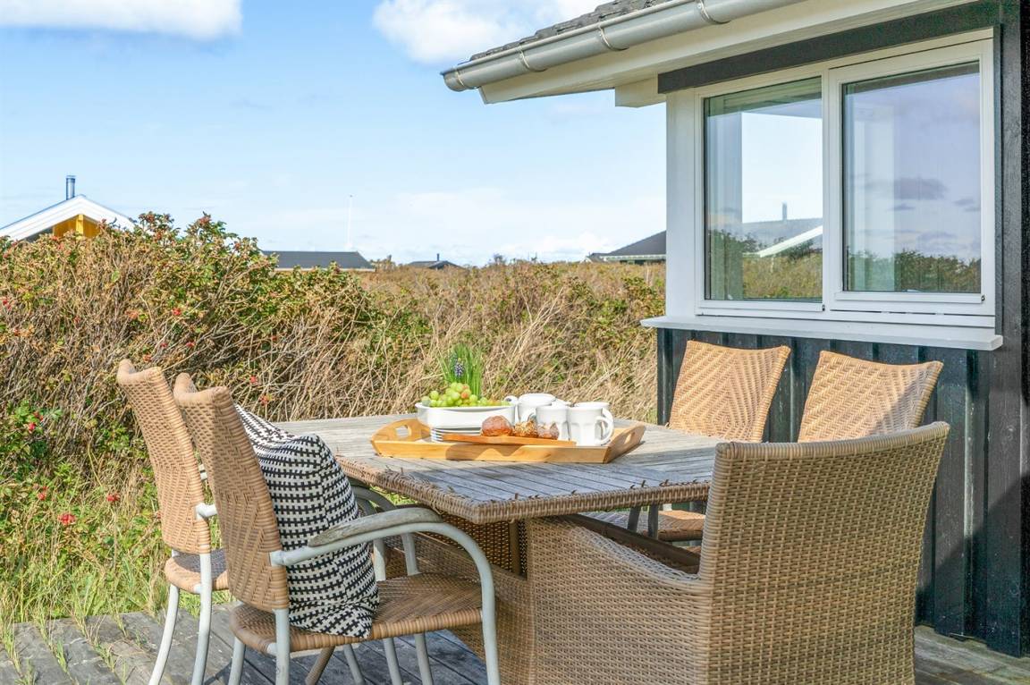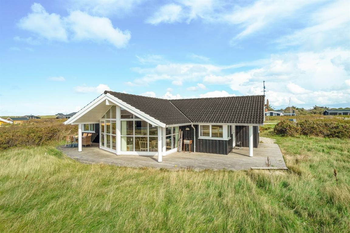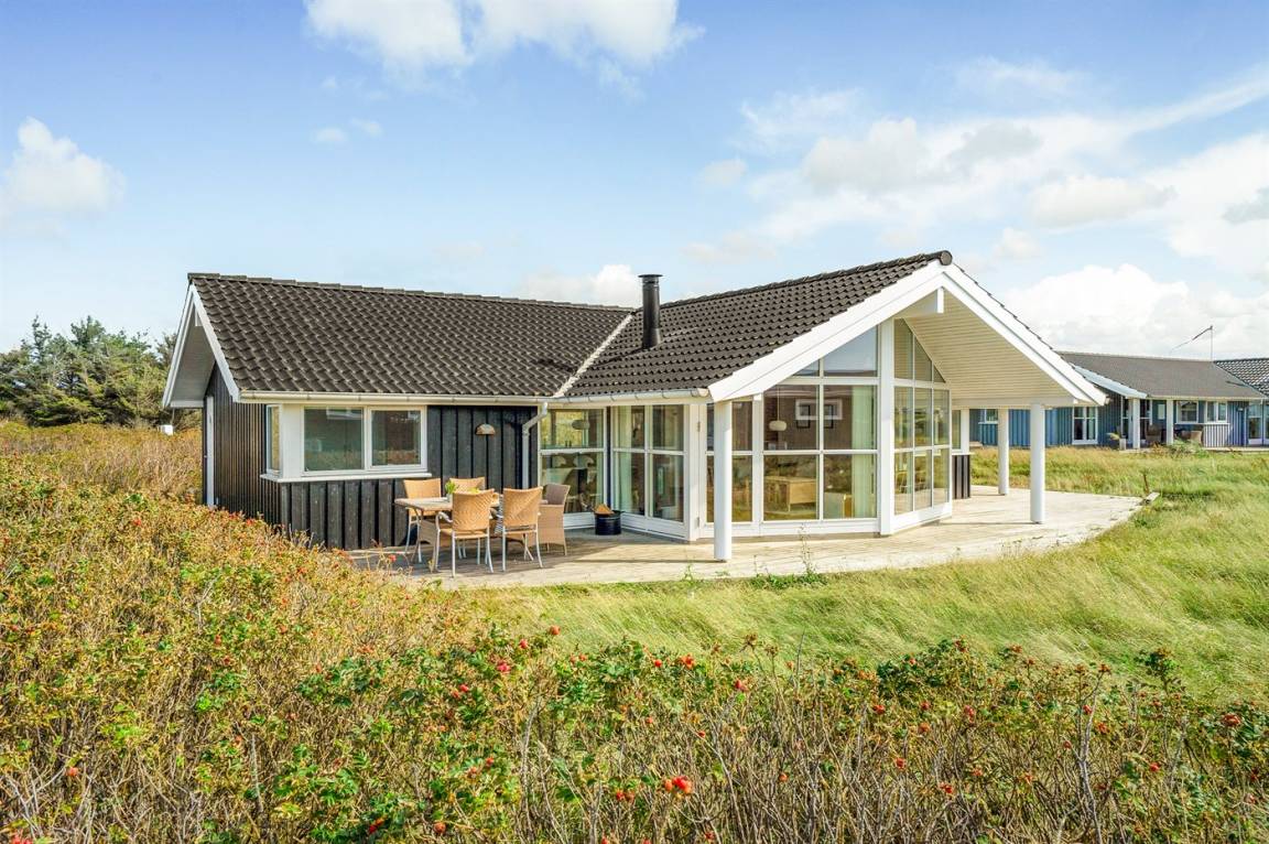 DraußenDie Ferienunterkunft liegt auf einem 1250 m² großen Dünengrundstück. Die Entfernung zum Meer beträgt 150 m. Die nächste Einkaufsmöglichkeit liegt 1500 m entfernt. Es steht ein 20 m² Terrassenareal zur Verfügung. Außerdem gibt es 20 m² überdachte Terrasse. Parkplatz auf dem Grundstück.