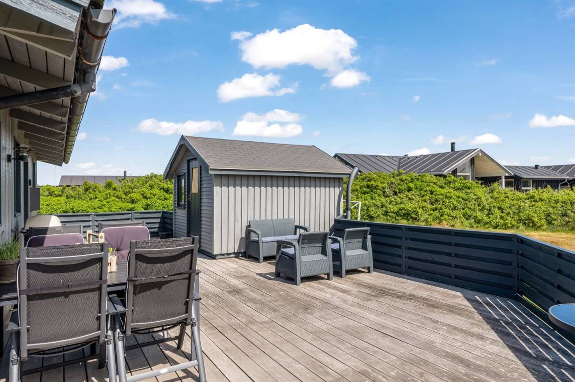DraußenDie Ferienunterkunft liegt auf einem 1280 m² großen Naturgrundstück. Die Entfernung zum Meer beträgt 200 m. Die nächste Einkaufsmöglichkeit liegt 1500 m entfernt. Es steht ein offenes Terrassenareal zur Verfügung. Geräteraum. Schaukel. Rutsche. Es steht ein Grill zur Verfügung. Parkplatz auf dem Grundstück.