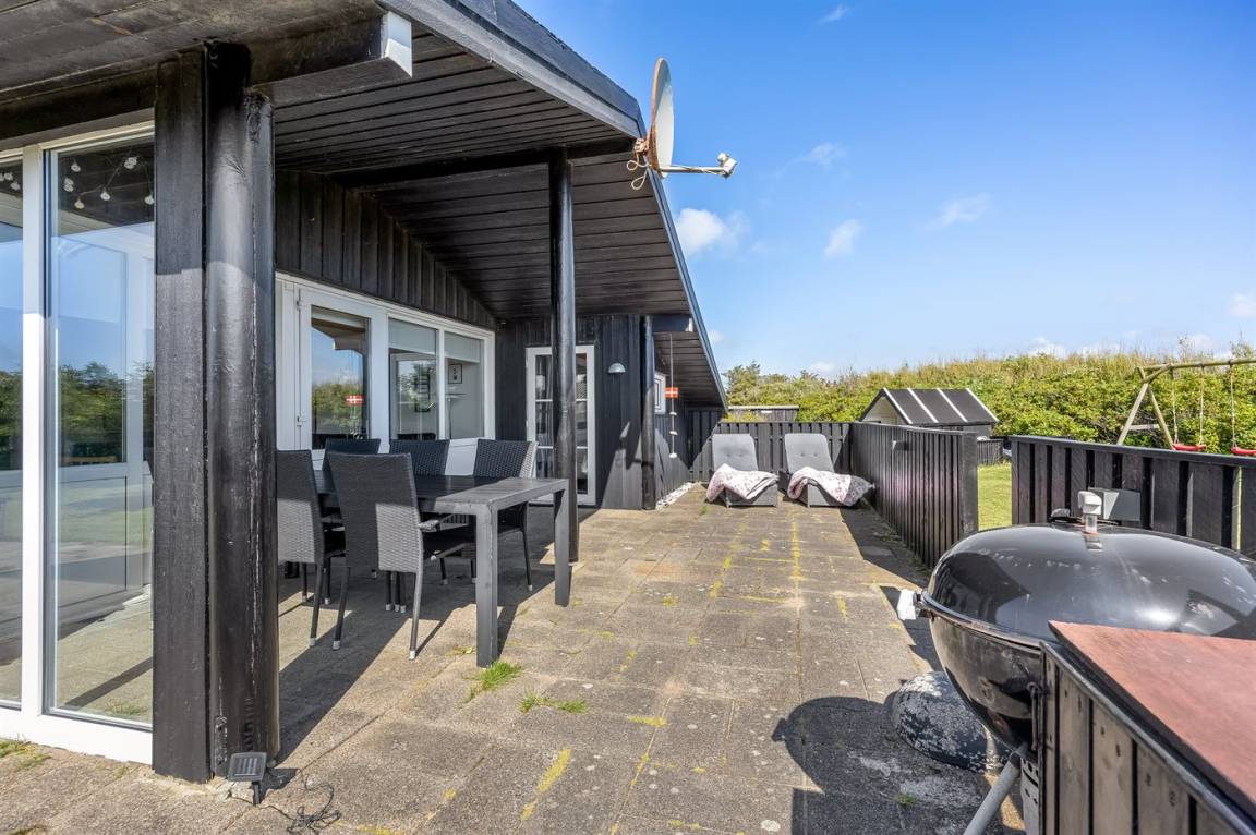 DraußenDie Ferienunterkunft liegt auf einem 1229 m² großen Naturgrundstück. Die Entfernung zum Meer beträgt 400 m. Die nächste Einkaufsmöglichkeit liegt 1500 m entfernt. Es steht ein offenes Terrassenareal zur Verfügung. Außerdem gibt es überdachte Terrasse. Schaukel. Sandkasten. Kinderspielhaus. Es steht ein Grill zur Verfügung. Parkplatz auf dem Grundstück.