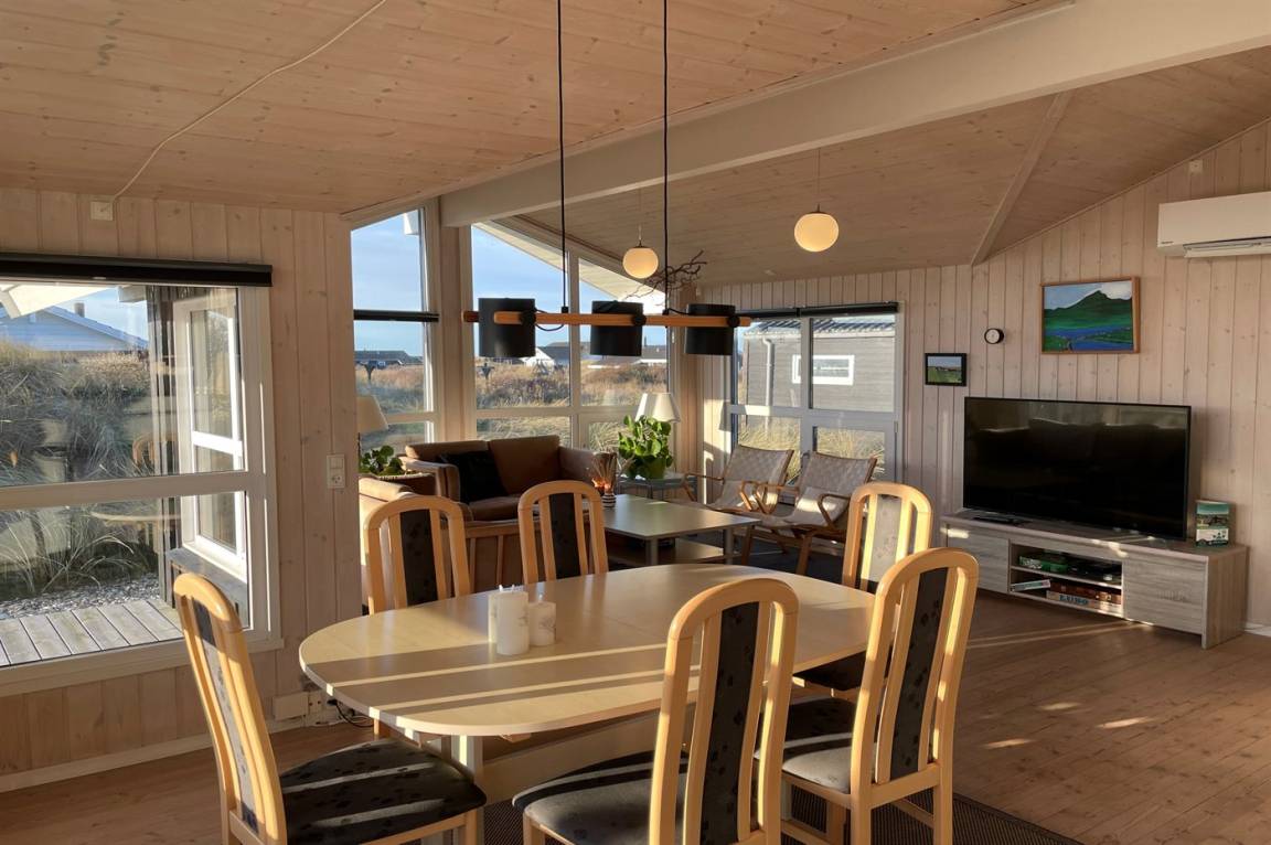 DraußenDie Ferienunterkunft liegt auf einem 1789 m² großen Dünengrundstück. Die Entfernung zum Meer beträgt 400 m. Die nächste Einkaufsmöglichkeit liegt 2200 m entfernt. Es steht ein 42 m² Terrassenareal zur Verfügung. Außerdem gibt es 24 m² überdachte Terrasse. Geräteraum. Schaukel. Sandkasten. Parkplatz auf dem Grundstück.