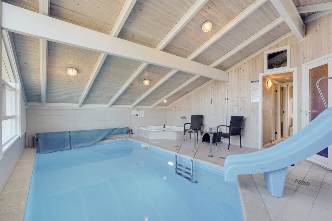 Auf einem schönen Grundstück am Ende der Sackgasse liegt dieses geräumige Ferienhaus mit schöner Aussicht auf die Natur. Das Haus liegt in einer Gegend mit vielen Naturerlebnissen und für Aktivitäten gibt es ein großes tropisches Badeland / Aktivitätszentrum ca. 900 Meter vom Haus entfernt. Das Haus hat ein offenes Obergeschoss. Es besteht die Möglichkeit für eine Kinderabsperrung am Holzofen. Der Swimmingpool im Haus wird durch eine energiesparende Wärmepumpe beheizt.