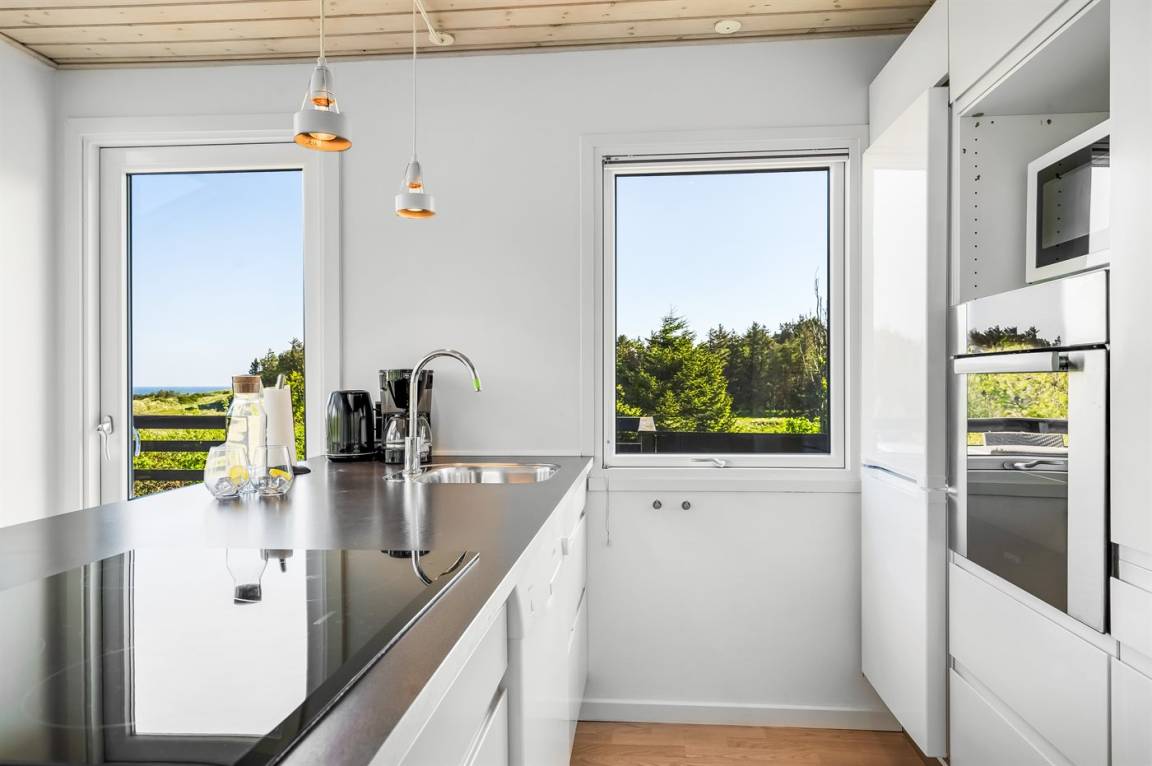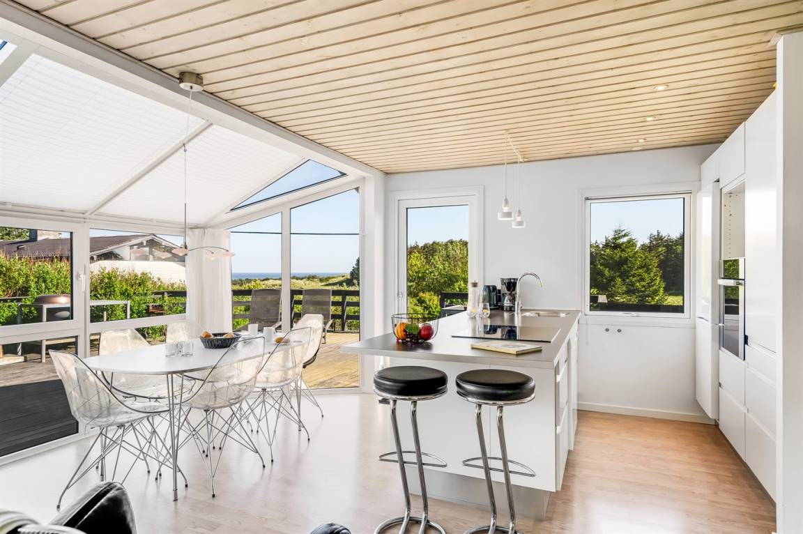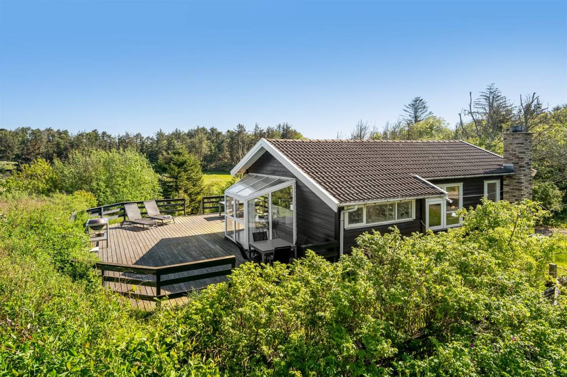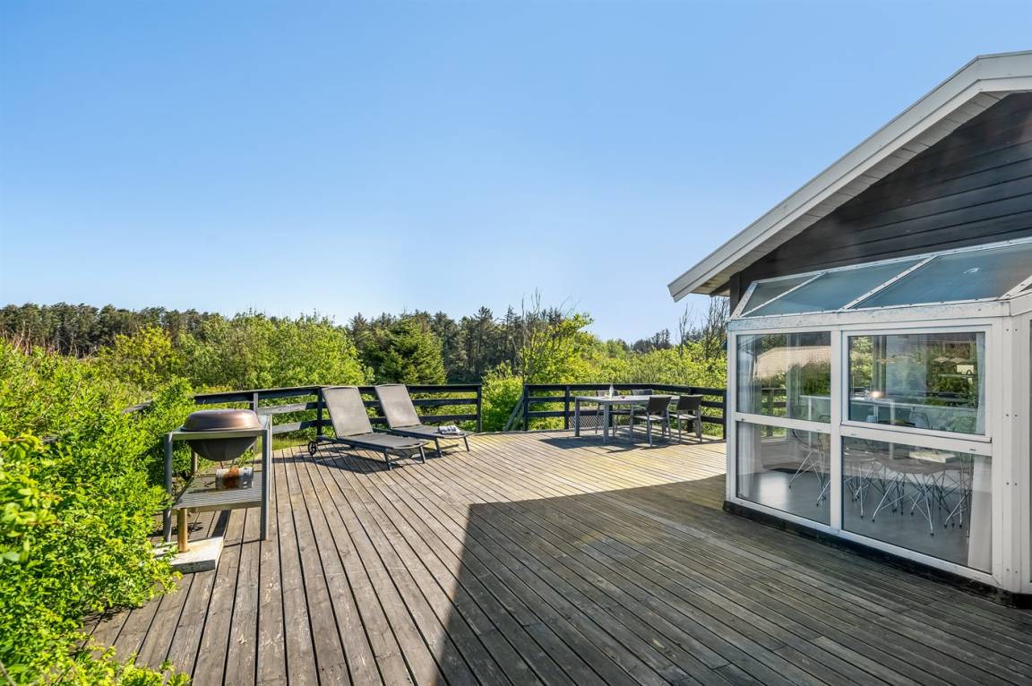 Ein prachtvolles Ferienhaus mit hoher Lage im Feriengebiet Skallerup Klit. Zum Haus gehört eine schöne Terrasse, von wo aus Sie die Aussicht über das Meer sowie auf die Fähren und Schiffe genießen können. Das Haus liegt auf einem hügeligen Naturgrundstück, nur 500 m von der Ferienanlage Skallerup Seaside Resort mit Aktivitäten für die ganze Familie entfernt.