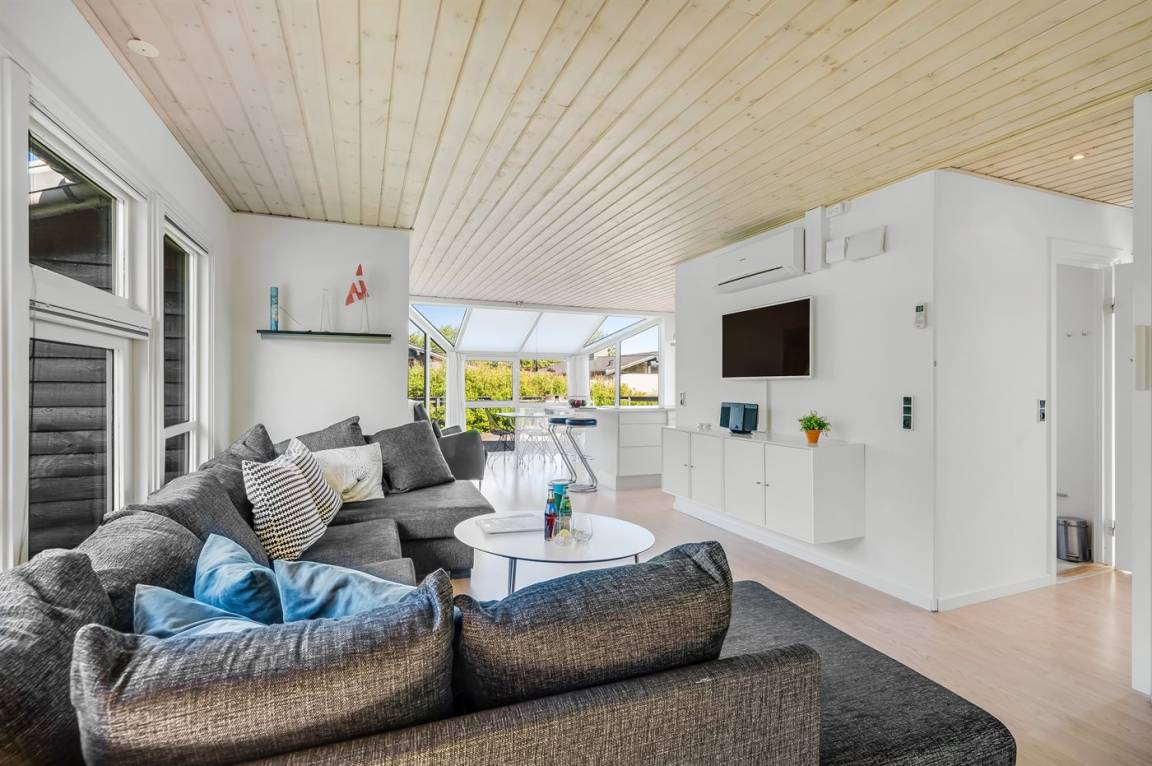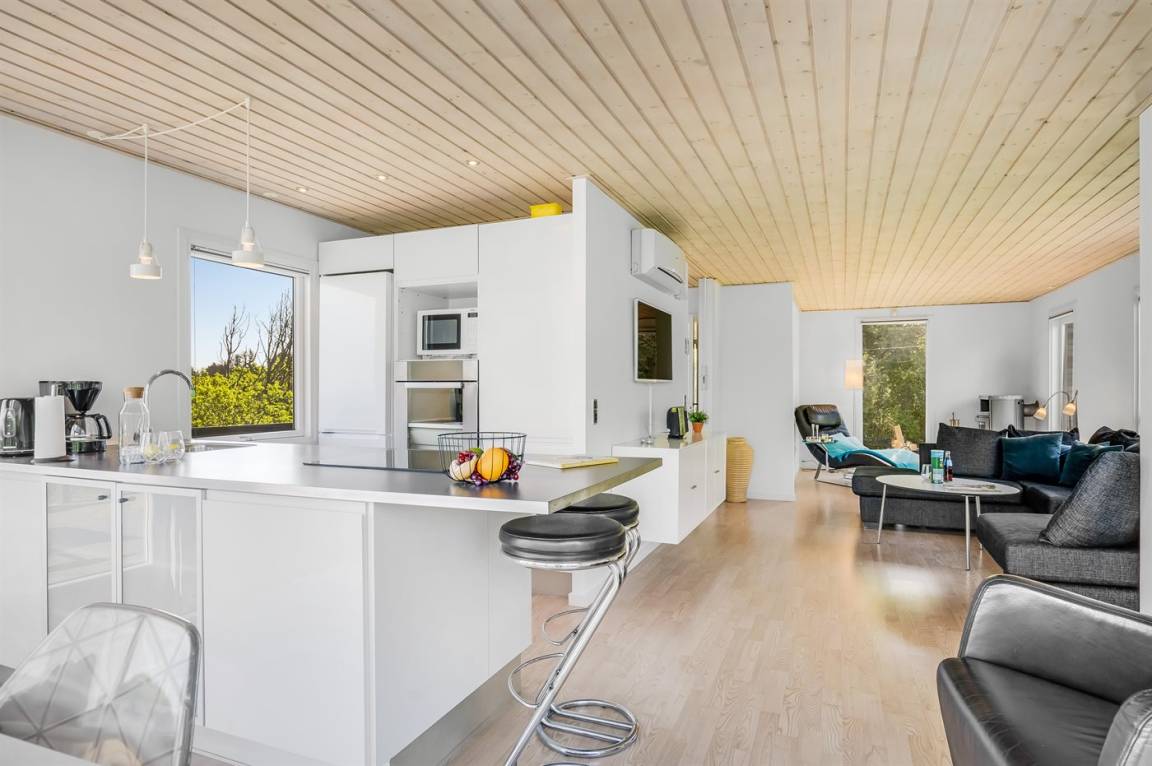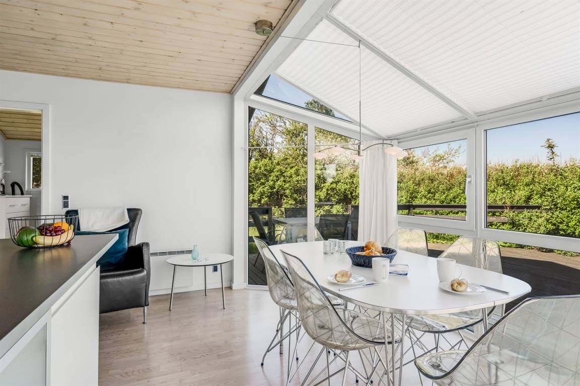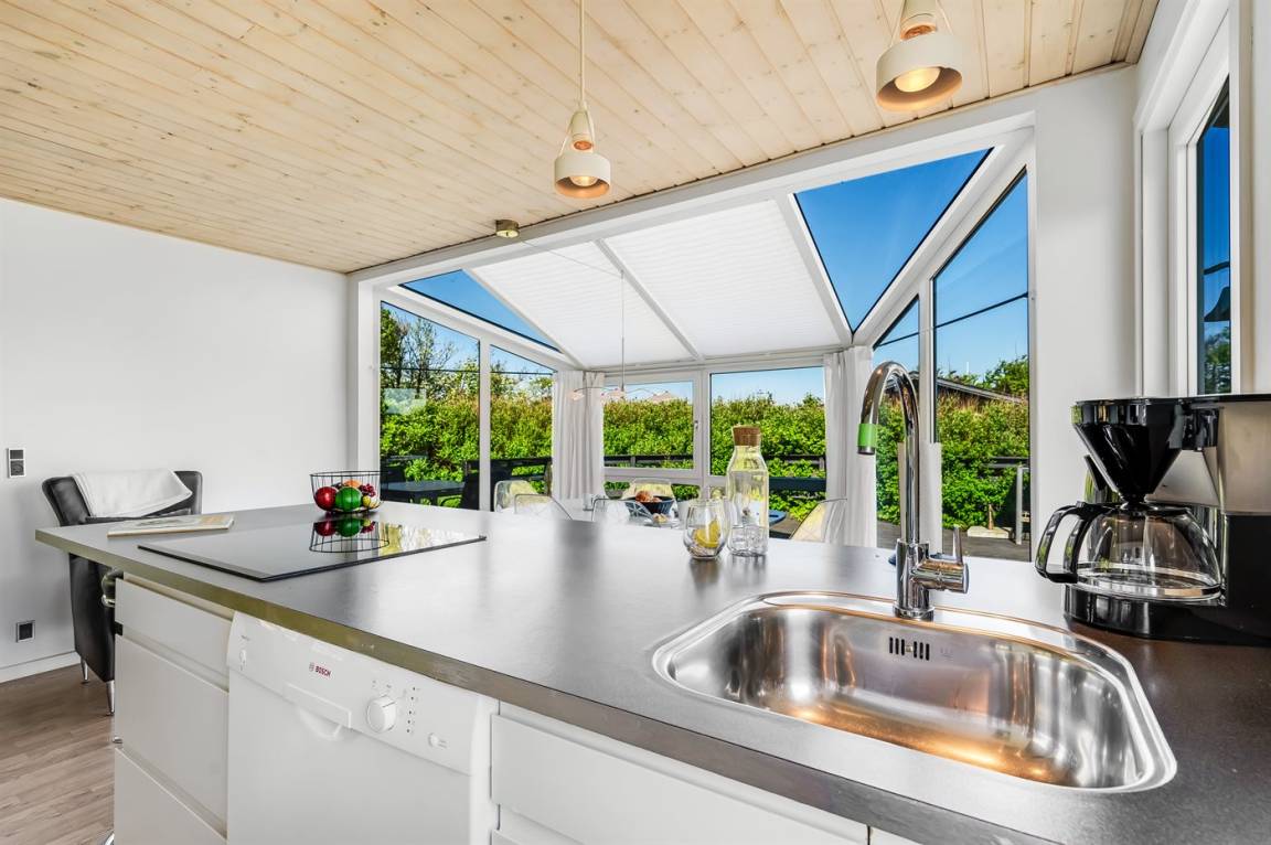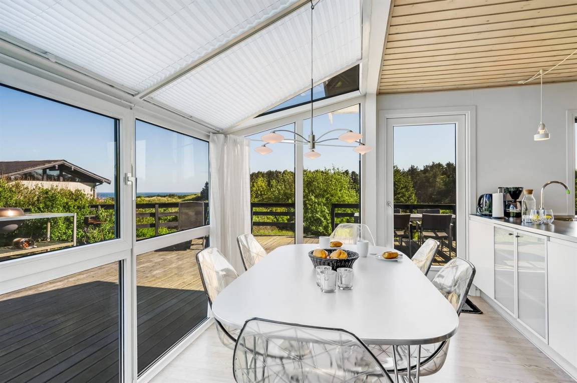 Ein prachtvolles Ferienhaus mit hoher Lage im Feriengebiet Skallerup Klit. Zum Haus gehört eine schöne Terrasse, von wo aus Sie die Aussicht über das Meer sowie auf die Fähren und Schiffe genießen können. Das Haus liegt auf einem hügeligen Naturgrundstück, nur 500 m von der Ferienanlage Skallerup Seaside Resort mit Aktivitäten für die ganze Familie entfernt.