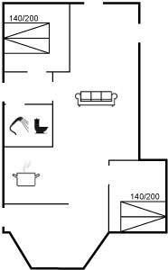 SchlafverhältnisseDie Schlafplätze verteilen sich auf 2 Schlafräume. 4 Schlafplätze in Doppelbetten.
