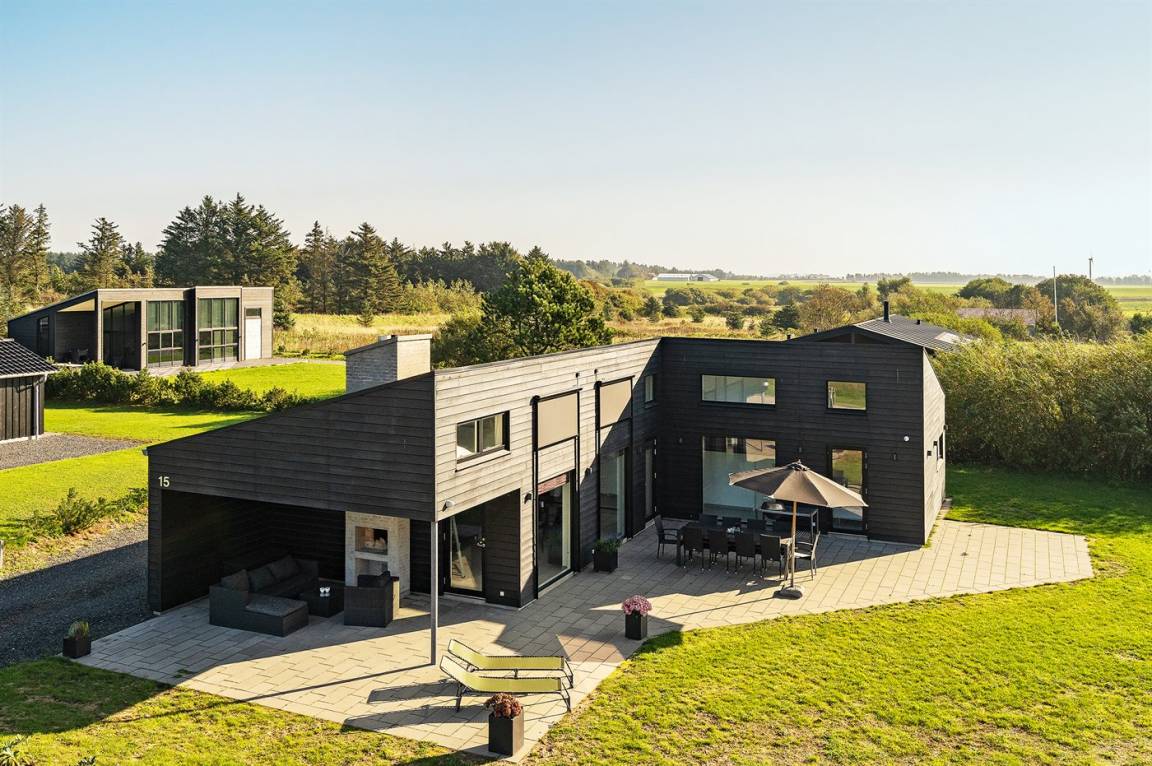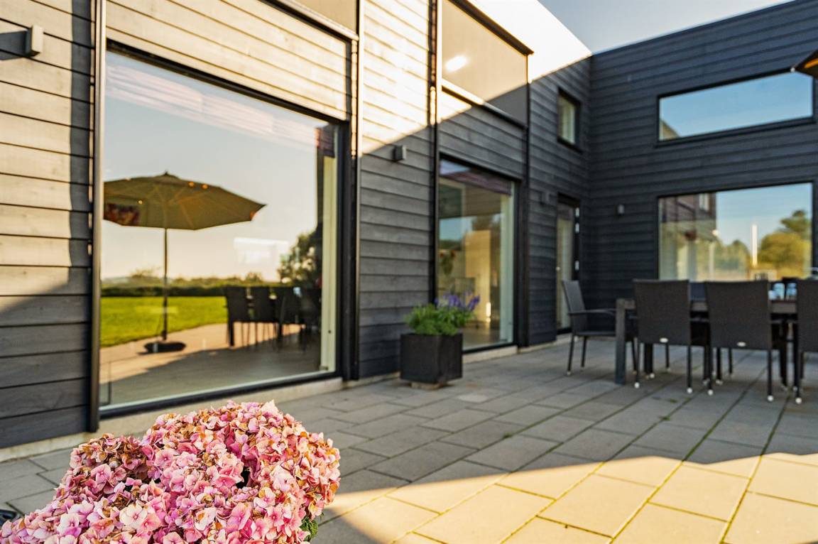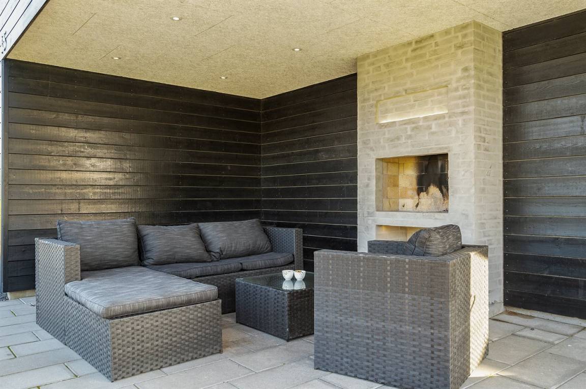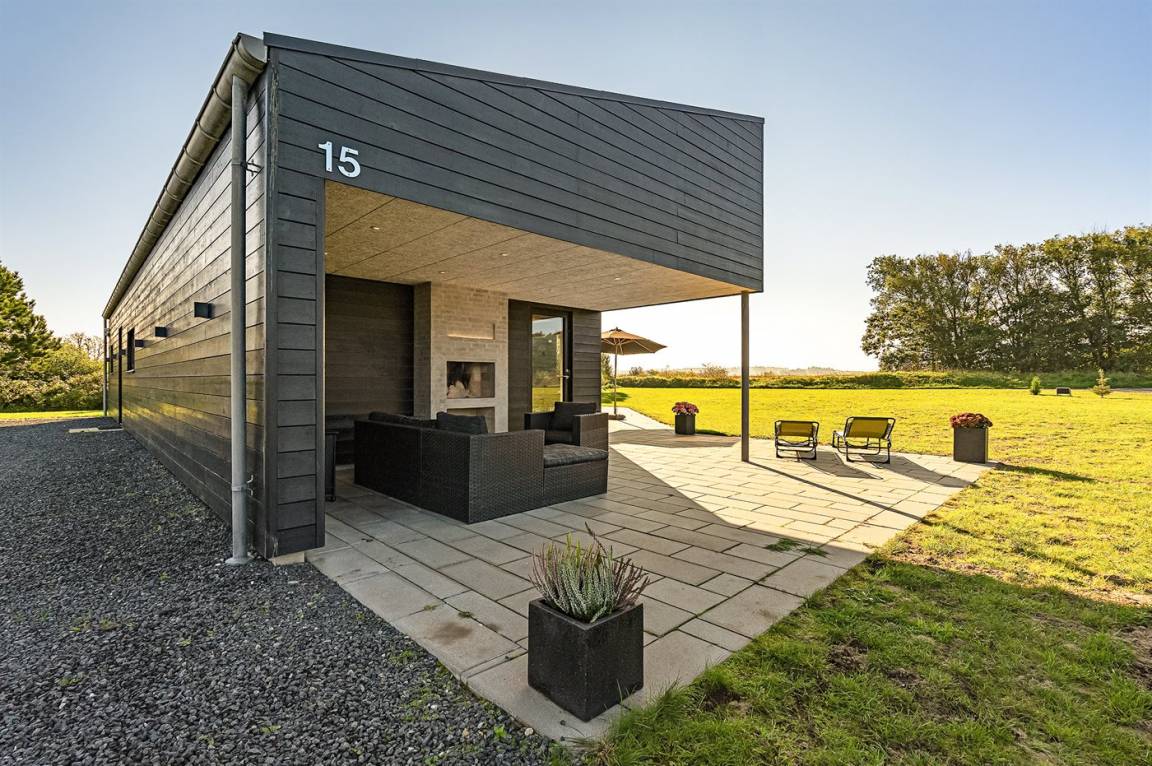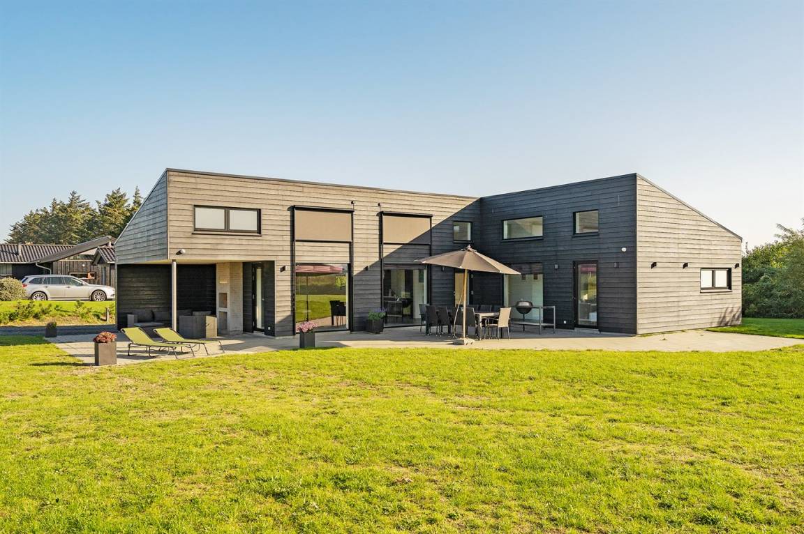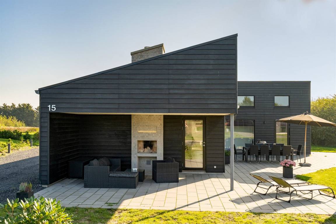 DraußenDie Ferienunterkunft liegt auf einem 1225 m² großen Naturgrundstück. Die Entfernung zum Meer beträgt 998 m. Die nächste Einkaufsmöglichkeit liegt 500 m entfernt. Es steht ein 105 m² Terrassenareal zur Verfügung. Außerdem gibt es 15 m² überdachte Terrasse.An Sommerabenden sorgt der Außenkamin für eine gemütliche Atmosphäre. Es ist ein Ladestecker für Elektroautos installiert. Mit einer Ladeleistung von 11 kW. Parkplatz auf dem Grundstück. Auswendig an den Fenstern des Hauses sind Screens montiert, damit an sehr sonnigen und warmen Tagen Abgeschirmt werden kann.