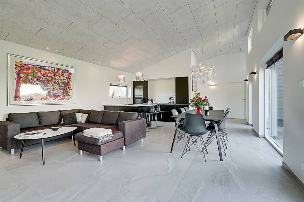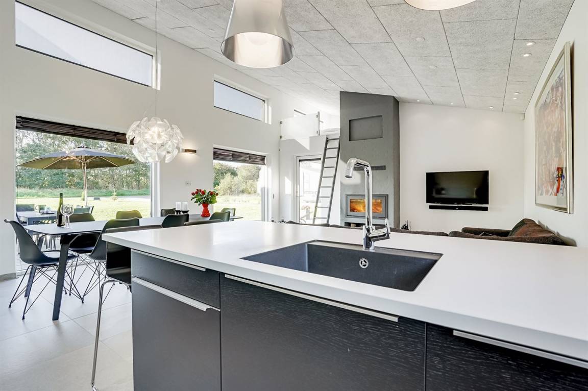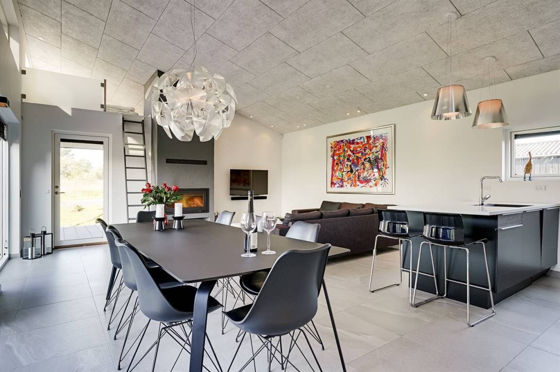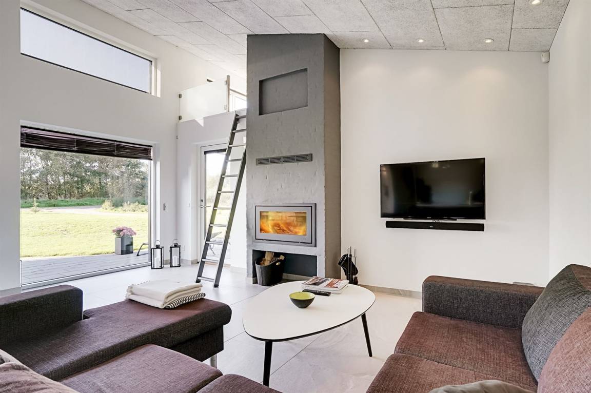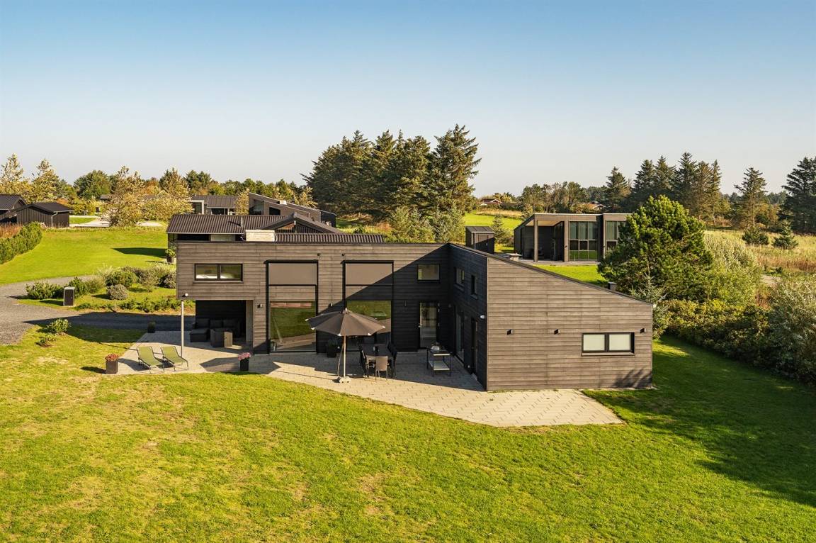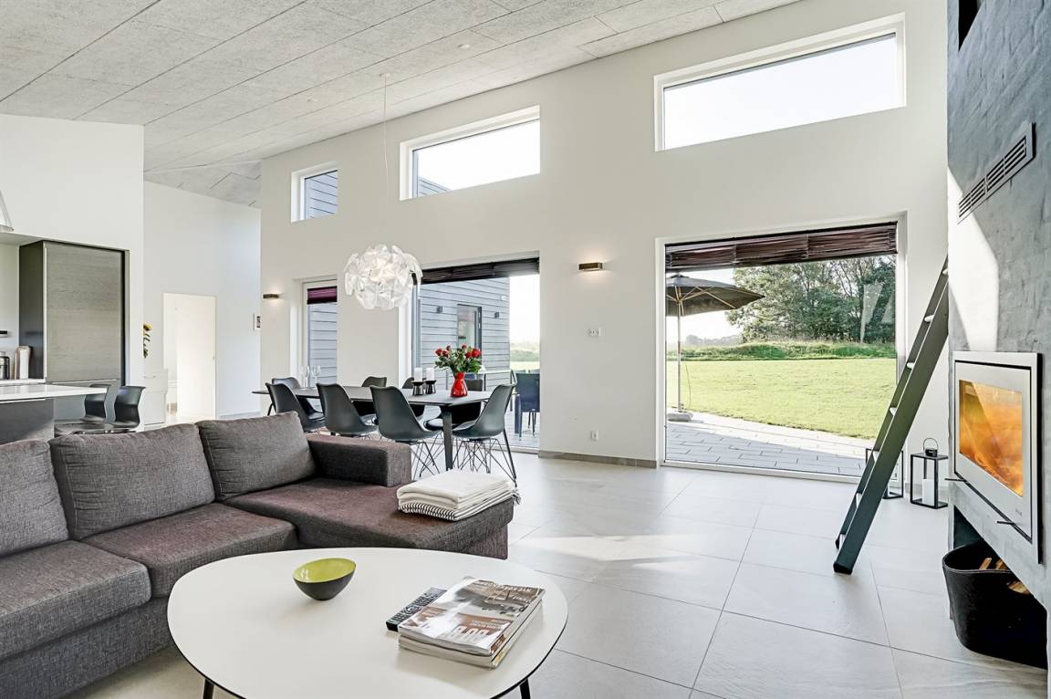 DraußenDie Ferienunterkunft liegt auf einem 1225 m² großen Naturgrundstück. Die Entfernung zum Meer beträgt 998 m. Die nächste Einkaufsmöglichkeit liegt 500 m entfernt. Es steht ein 105 m² Terrassenareal zur Verfügung. Außerdem gibt es 15 m² überdachte Terrasse.An Sommerabenden sorgt der Außenkamin für eine gemütliche Atmosphäre. Es ist ein Ladestecker für Elektroautos installiert. Mit einer Ladeleistung von 11 kW. Parkplatz auf dem Grundstück. Auswendig an den Fenstern des Hauses sind Screens montiert, damit an sehr sonnigen und warmen Tagen Abgeschirmt werden kann.